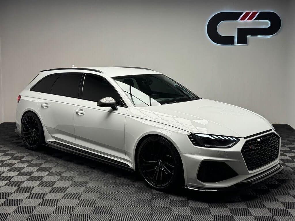 Glacier White, Red Brake Calipers in High-gloss Finish with RS Logo at the Front, 2 USB Charging Ports, 20in Alloy Wheels - 5-Segment-Spoke Evo Style Design in Glossy Black, 6-Airbag System, Anti Theft Locking Wheel Bolts, Anti-Theft Alarm, Audi Beam, Audi Connect Infotainment Services (36 Month Subscription From New), Audi Connect Safety and Service - e-call, Audi Phone Box with Wireless Charging, Audi Pre-Sense City, Audi Rings and Lettering - Glossy Black, Audi Side Assist, Audi Smartphone Interface, Audi Sound System, Audi Virtual Cockpit with RS Specific Display, Auto-Dimming Rear-View Mirror, Black Cloth Headlining, Black Roof Rails, Bluetooth Interface, Brake Calipers Painted in Black with RS 4 Logo at the Front, Carbon Black Styling Pack, Cruise Control System with Speed Limiter, DAB Digital Radio Reception, Deluxe 3-Zone Electronic Climate Control, Door Handles - Body Coloured, Door Mirrors - Heated-Electrically Adjustable-Folding and Auto Dimming with Built-in LED Side Indicators and Kerb-view on Passenger Side, Door Mirrors - High-Gloss Black Housing, Door Sill Trims - Illuminated with RS4 Logo, ESC - Electronic Stabilisation Control inc ABS - ASR and EDL, Electric Load Area Cover, Electric Windows - Front and Rear, Electrically Adjustable Front Seats, Electromechanical Power Steering, Email - Calendar and Text Messages can be Displayed on your Vehicles MMI, First Aid Kit and Warning Triangle, Flat-Bottomed High Multi-function 3-Spoke Leather Sport Steering Wheel with RS Badging, Front Centre Armrest, Front and Rear Floor Mats, Heated Front Seats, Hill Hold Assist, ISOFIX Child Seat Mounting and Top Tether, Inlays - Carbon Twill, Keyless Go, LED Interior Lighting Pack, Leather Door Armrests and Knee Pad, Light and Rain Sensor, MMI Navigation Plus including MMI Touch, Matrix LED Headlights with LED Rear Lights and Dynamic Front and Rear Indicators, Multi Collision Brake Assist, Parking System Plus - Front and Rear Sensors, Pedals in Stainless Steel, Pneumatic Massage Function, Pop-up Bonnet, Power Operated Tailgate, Privacy Glass with Rear Acoustic Glazing, Quattro Sports Differential, RS 4 Badges on Grille - Front Wing Panels and Rear, RS 4 Dual-branch Chrome Tailpipes with Large Oval Pipes Each on Left and Right, RS Audi Drive Select, RS Body Styling, RS Exhaust System, RS Model Enhanced Braking System, RS Sports Suspension, RS-Specific Gear Lever Knob in Perforated Leather with Contrast Stitching, Rear View Camera, Remote Control Key with RS Emblem, Seat Belt Monitoring, Split-folding Three-seater Rear Seat Bench with 3-part - 40-20-40 Design and Rear Centre Armrest, Tool Kit, Tyre Repair Kit, Voice Control, Windscreen with Acoustic Glazing