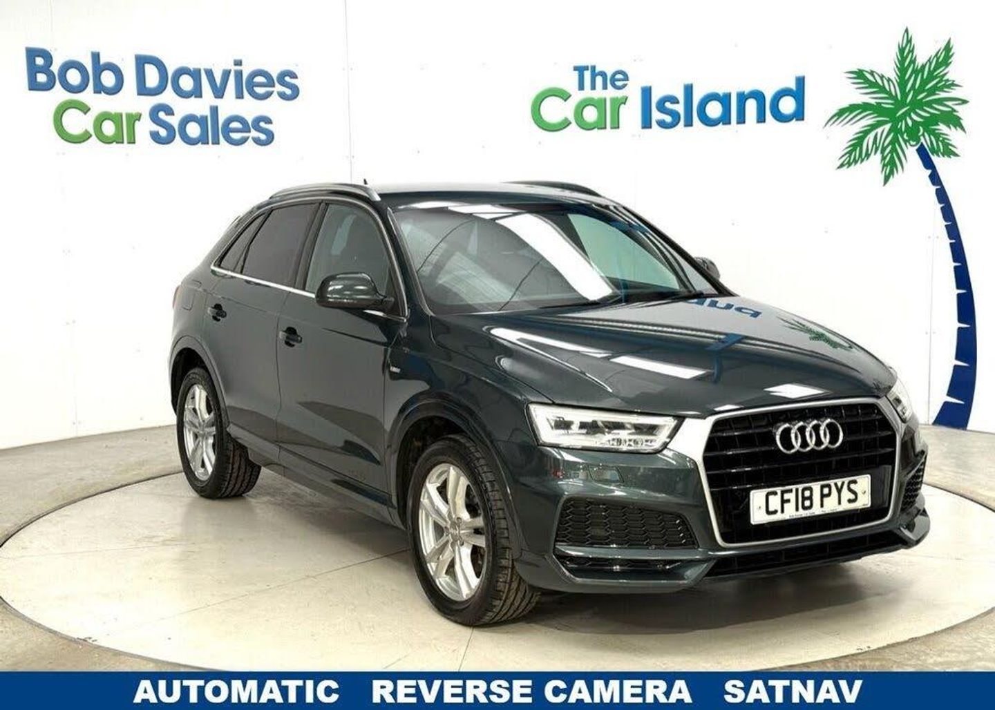 Beautiful Automatic 150 BHP Q3 in Camouflage Green Metallic with Upgrade 18" Alloys & Privacy Glass. Half Leather Interior & Lumber Support, SATNAV, Apple CARPLAY, Dual Zone Climate Control, Parking Camera And Parking Pilot, DAB Radio, Cruise Control, Parking Sensors, Bluetooth Phone & Music Connectivity, 7" Retractable Display, Audi Drive Select, AUX & USB Inputs, Electric Windows & Mirrors, Auto Lights, 2 Keys and Great AUDI Service History to list a few. ULEZ Compliant EURO 6****** Bob Davies Car Sales is established as a trusted supplier of quality cars. Family business providing low mileage cars for over 40 years. High standards, great reputation & 5-star customer service. Open 6 days. Best value in 100 mile radius. ***** Request a personal walk round on any car and we'll make sure you're happy before reserving or travelling. No pressure, no fuss, no fees. Secure with £100 refundable deposit.***** We deliver all over the UK to your door with our successful "Mouse to House" delivery. Wherever you live, we will bring your perfect car to you. Feel confident in the quality and condition of our vehicles, our warranty covers the UK.****** Best Rate Finance available to all, even for poor credit. No deposit needed just get contact us and we will tailor to suit you. " Quality Cars at Sensible Prices"