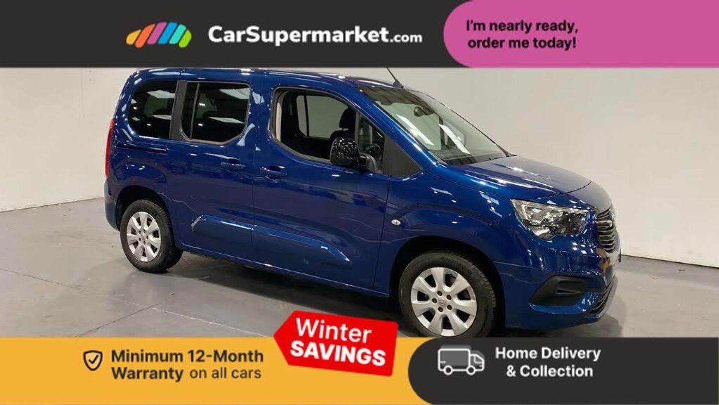 10" colour information display,Central facia display with digital clock, outside air temperature and audio information,Cruise control + speed limiter,Driver drowsiness alert system,Driver information - Total mileage, service indicator, oil life,E-call,Forward collision warning,Front camera system,Handsfree calls via steering wheel controls,Instrumentation - Speedometer, rev counter, low fuel gauge warning light + water temperature gauge warning light, shift up/down indicate light,Lane departure warning with lane change assist,Lights on audible warning,Multi function trip computer - Trip odometer, vehicle range, average speed and fuel economy, instantaneous fuel economy and driving time,Panoramic rear view camera,Phone book access,Smartphone projection,Speed sensitive electric power assisted steering,Speed sign recognition,Traffic sign recognition,Vehicle microphone,Warning light in instrument cluster,Diesel particulate filter,Steering wheel mounted audio controls,Automatic headlight control system,Body colour door handles,Body colour door mirrors,Body colour front and rear bumpers,Body colour side access door rail covers,Body colour side protection mouldings,Chrome-effect front grille bar,Dark tinted rear windows,Dipping rear view mirror,Electric folding door mirrors,Electrically adjustable and heated door mirrors,Electrically operated front and rear windows with safety auto reverse and one touch up/down facility,Flexible roof mounted aerial,Front fog lights,Glazed tailgate with split opening,Hazard warning lights,Heated rear windscreen,Intermittent rear window wash/wipe,LED daytime running lights,LED Headlights,LED side repeat indicators,Magic wash,Manual headlight beam levelling,Nearside and offside sliding side access door with opening windows,Rear fog lights,Reversing light,Side window demist vents,Sliding doors- rear side left and right,Solar heat absorbing windscreen and windows,Tailgate with opening heated window and wash/wipe facility,Third brake light,Tinted glass including windscreen,Windscreen demist vents,12V electrical accessory socket in centre console,3 seat bench in 2nd row,3 spoke flat bottomed steering wheel with satin chrome effect bezel,4 speed fan with illuminated controls,4 way manually adjustable passenger seat with reach, backrest, headrest and flat fold facility,6 way adjustable driver seat - height, reach, backrest, manual lumbar, armrest, under seat storage, headrest,Adjustable dashboard illumination,Air recirculation facility,Cabin particulate filter - removes dust, airborne particles and pollen,Chrome inner door handles,Driver sun visors incorporating vanity mirrors with covers,Driver/passenger reading lights,Fade up/fade down on interior lighting,Four adjustable facia vents,Four load restraint lashing eyes,Front body-lock seatbelt pretensioners,Front seat back pockets,Front/rear courtesy lights,Fully carpeted load area,Heated steering wheel,Height/reach adjust steering wheel,Illuminated load area,Interior tailgate handle,Large open storage pocket behind infotainment screen,Leather steering wheel,Luggage compartment cover,Luggage compartment lighting,Mistral cloth upholstery,Open storage compartment below glovebox,Passenger armrest,Rear adjustable/removable headrests,Rear heater duct,Single front passenger seat,Small open storage compartment behind gear knob,Twin gas assisted tailgate struts,Two drinks holder in centre console,Two facia mounted drinks holders,Two foldable table with cupholders,Two large and two small front open door pockets,Two rear door pockets,USB charging and infotainment in rear of centre console,USB charging point in glovebox,Sight and light Pack - Combo Life,ABS,Automatic emergency braking with pedestrian detection,Child locks on rear doors,CSC - Cornering stability control,Deactivation switch for front passenger's airbag,Driver/Front Passenger airbags,Electronic brake force distribution,Electronic parking brake,Emergency brake assist,ESP,Front seat side impact airbags,Front seatbelt unfastened audible warning and warning light,Full size curtain airbags,Hill start assist,ISOFIX child seat mountings incorporating top tether anchor points located on second row rear seats,Lap and diagonal inertia reel seatbelts,Motor Slip Regulation (MSR) - Engine Drag Torque Control,Straight line stability control,Three 3 point rear seatbelts,Traction control,Two inertia reel seatbelts - 3rd row,Tyre pressure monitoring system,Electronically protected audio equipment,Engine deadlock and immobiliser,Freewheeling door locks,Key left in ignition audible warning,Locking wheel bolts,Remote control central locking,Visible vehicle identification number,Chrome instrument cluster dial rings,16" 7 spoke alloy wheels,Full wheel covers,Tyre repair kit