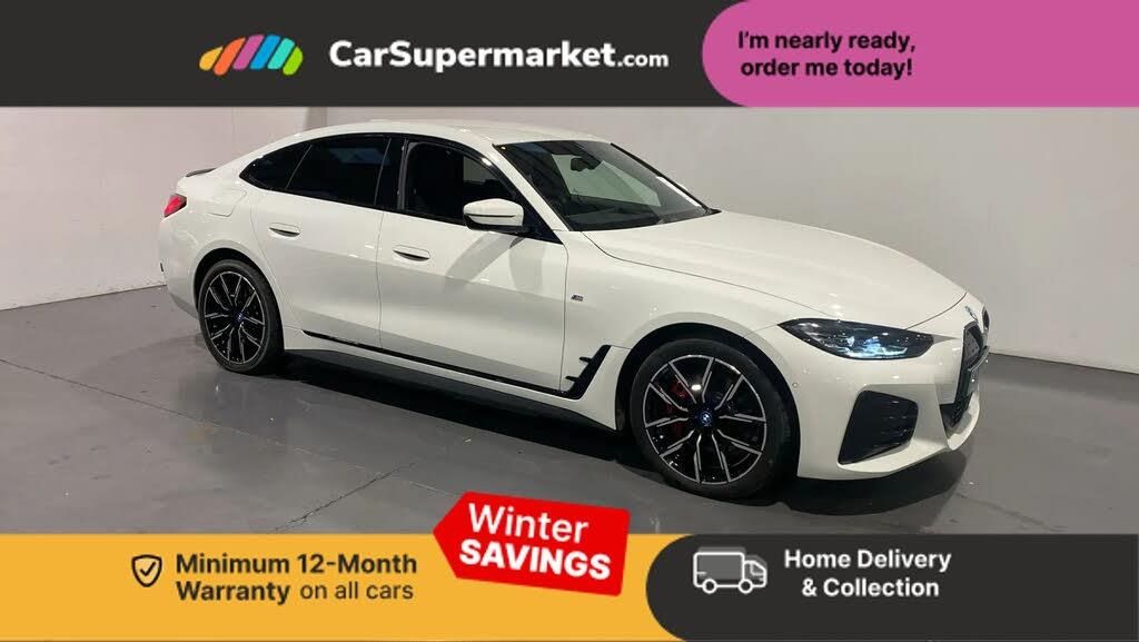 Active guard plus,Attentiveness assist,Automatic tailgate operation,BMW legal emergency call,BMW remote services,BMW Teleservices,Condition based service,Cruise control with brake assist,Drive off assistant,Driving experience switch,Engine start/stop button,iDrive controller,Integrated owners handbook,Live cockpit plus with nav function 12.3" instrument cluster and 14.9" centre display,Personal Profile - automatic lock when driving away selectable,Preparation for active cruise control with stop and go,Run flat indicator,Service interval indicator,Smartphone integration,Speed limiter,Widescreen display,AC charging up to 11kW,DC charging up to 150kW,eDrive exterior sound,Electric drive unit,Electronic differential lock,High voltage battery,Mode 2 flexible charger,Mode 3 charging cable,Safety battery terminal clamp,2x USB Type C ports in front centre console for charging and data transfer,BMW iconic sound electric,DAB tuner,Auto dimming rear view mirror,Auto dimming with folding wing mirrors,BMW badge on bonnet and tailgate with blue ring around the badge,BMW radiator grille partially with blue accent,BMW radiator grille with mesh grille/end face of the nuggets in quartz silver matt,Body colour door handles,Body colour mirror caps with bottom segment in matt black,Electric adjustable exterior mirrors,Electric windows with trap release and convenient opening/closing feature,Exterior mirror heated,Fading support,Follow me home headlights,Front and rear bumper system,Front apron plastic in body colour,Headlight beam throw control,Heated washer jets,High gloss black mirror triangles,High gloss shadow line exterior trim,I badge with blue highlight on front ornamental grille,I4 charging socket flap, right, rear in body colour,Integrated outside door handles, flush design, flush integrated, handle recess indirectly illuminated,Lateral blue accent including air breather,LED daytime running lights,LED direction indicator lenses,LED eyebrow light,LED front fog lights,LED rear lights,M Sport entry door sill strips,Mirror glass aspheric on driver's side, convex on passenger side,Model logo - Rear and right model designation, Rear left i4 inscription,Number plate panel integrated into front bumper and tailgate,One piece front bumper cover including towing eye cover in body colour,Rain sensor including auto headlights activation,Rear bumper with blue accent,Rear side wing doors,Rear wiper,Reversing light,Roof fin in body colour,Side frame trim strip in black matt,Side LED indicators,Trailer stabilisation logic,Turn indicators in side mirrors,Visible VIN plate,Welcome lighting,Window cavity seal in black matt,12v power outlet - luggage side,12V power outlet in front console,2 front cupholder in centre console with clamping elements and matt black inlay,3 seat bench in 2nd row,3 spoke leather M sport multifunction sports steering wheel,40:20:40 split folding rear seat and rear centre armrest with two cupholders,Adjustable steering column,Ambient door pocket lighting,Ambient inside door handle light in rear,Ambient interior lighting with 11 pre-defined selectable light designs including 6 colours,Ambient light design projected onto the left and right entering and exiting area,Ambient storage compartment lighting in the centre console,Anthracite headlining,Automatic air conditioning with 3 zone control,BMW ID,Compartment in front of cupholder,Contour lighting in instrument panel and door trim panel,Driver seat backrest width adjustment,Dynamic function of contour lighting,Front and rear ambient footwell lighting,Front and rear armrest with integrated door trim,Front and rear door exit lights,Front and rear door pockets,Front sport seats,Glovebox light,Headrests for all seats,Heated front seats,Illuminated armrest storage compartment,Interior light and reading light,Lashing eyelets in boot,Luggage compartment light,Make-up mirror lights,Manual adjustment of seat height, fore/aft position, seat depth, backrest tilt and head restraint height,Rear storage compartment,Single front passenger seat,Storage tray and compartment with cover in centre console,Sunvisors with vanity mirrors and ticket pocket,Through loading system,Toolkit,M Sport exterior styling pack - I4,3 point seatbelts on all seats,Acoustic protection for pedestrians,Active protection,Anti lock braking system (ABS) with brake assist,Automatic Stability Control (ASC),Battery safety cut-off,Brake drying,Brake energy regeneration,Brake pretensioning,Cornering brake control (CBC),Crash sensor activating central locking release, hazard warning lights,Driver and front passenger airbags,Driver and passenger side airbags,Driver/passenger seat occupancy sensor,Dynamic brake control,Dynamic stability control + (DSC+),Dynamic Traction Control - DTC,Electromechanical parking brake,Front and rear curtain airbags,Front and rear ventilated brake disc,Head airbags for all 4 outer seats,Hill start assistant,ISOFIX child seat mounting on rear outer seats