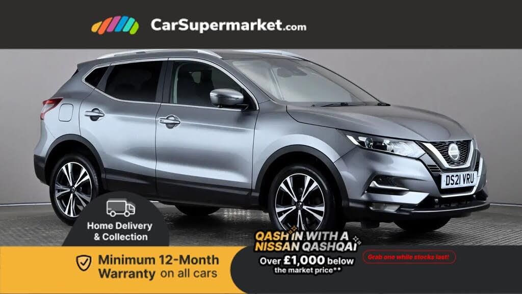 360 degree Intelligent around view monitor,Advanced drive assist display 5'' TFT coloured screen,Apple car play/Android Auto,Bluetooth connectivity,Cruise control + speed limiter,Electric speed sensitive power steering,Front parking sensors,Idle stop/start system,Intelligent park assist,Lane departure warning system,Nissan connect evo 7" touchscreen navigation and entertainment system,Normal or sport selectable steering,Outside temperature sensor,Premium Tomtom connected services,Push button starter,Rear parking sensors,Service interval indicator,Smartphone integration,Traffic sign recognition,Trip computer,Voice control system,Nissan chassis control (intelligent ride control, intelligent trace control, intelligent engine brake),6 speakers,AM/FM radio, CD audio system,Aux-in socket,DAB Digital radio,Steering wheel mounted audio controls,USB port,Anti dazzle rear view mirror,Auto wipers,Body colour bumpers,Body coloured door handles,Body coloured door mirrors,Chrome window surround,Daytime running lights dip function when turn signal applied,Electric folding door mirrors,Electric front and rear windows with one touch illuminated window controls,Electrically adjustable door mirrors,Front fog lights,Halogen headlights,Heated door mirrors,High beam assist,Intelligent auto headlights,LED indicators in door mirrors,Matt silver roof rails,Privacy glass,Rear roof spoiler,Rear wiper with reverse link,Shark fin antenna,Signature LED daytime running lights,Silver rear styling plate,Underbody vortex generators,2 X front 12v power sockets,3 height adjustable rear headrests,60/40 split folding rear seat,Ambient interior lighting,Ambient lighting around centre console,Bi-colour cloth upholstery,Boot lighting,Centre console storage box/armrest,Chrome interior door handles,Driver's seat manual height adjust,Dual zone climate control,Front and rear door pockets with bottle holders,Front and rear seat belt pre-tensioners with load limiters,Height adjustable front headrests,ISOFIX restraints on outer rear seats x2,Leather D shaped steering wheel,Leather gear lever,Leather knee pad,Luggage board system,Manual height adjustable passenger seat,Manual lumbar support on driver seat,Manual lumbar support on passenger seat,Monoform front sport seats with plastic backboard,Parcel shelf stow function under luggage board,Pollen filter,Rear armrest with 2 cupholders,Synthetic leather wrapped door handle with contrasting stitching,Tilt/telescopic adjustable steering wheel,Glass roof pack - Qashqai,6 airbags - Driver, front passenger, curtain and side airbags,ABS, ESP, EBD and brake assist,Auto hold function,Child locks on rear doors,Electronic parking brake,Front and rear seat belt warning,Height adjustable front seatbelts,Hill start assist,Intelligent emergency braking with pedestrian recognition,Manual passenger airbag deactivation function,Three 3 point rear seatbelts,Tyre pressure monitoring system,Anti-theft immobiliser,Intelligent Key,Remote central locking,Thatcham Cat.1 alarm,Carbon graphite dash trim,18" Two tone alloy wheels