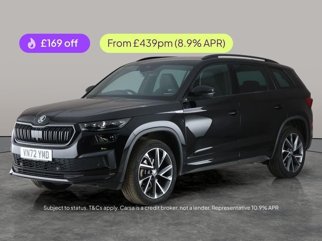 Experience the stylish black Skoda Kodiaq SportLine, designed for family adventures with seven seats. Enjoy the comfort of heated Alcantara seats, electric adjustable driver seat with memory, and keyless entry for added convenience. Navigate effortlessly with Skoda Columbus touchscreen navigation and stay connected via Apple CarPlay and SmartLink. LED headlights and a handy reversing camera enhance safety and visibility. Perfect for those seeking space, technology, and a touch of luxury in their next SUV. 3 services recorded, last serviced on 13/10/2025 at 26,068 miles. MOT to 15/10/2026. Visit our website for service history, online valuation, full vehicle specification plus multiple images. Any feature/option specified here is from 3rd party data. We cannot guarantee the accuracy of any specification supplied by a 3rd party. We recommend that you physically check the specification of the vehicle on site prior to purchase. This information does not form part of the buying contract. Terms & Conditions apply. We have over 2,000 cars available from our 10 national branches, check our website to see all our stock. Our Trustpilot rating is 4.4/5 with over 9,000 reviews.
