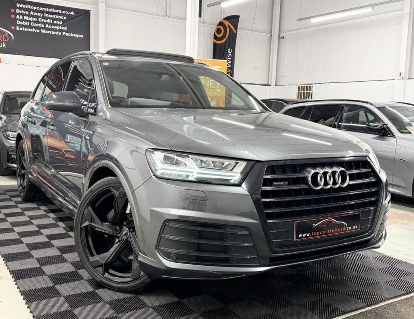 JUST ARRIVED AWAITING PREP PLEASE CALL TO RESERVE OR REGISTER YOUR INTREST ONLINE £99 DEPOSIT FULLY REFUNDABLE SUBJECT TO VIEW, IMMACULATE EXAMPLE, HIGHLY POPULAR&ATTRACTIVE NEW SHAPE FACELIFT MODEL AUDI Q7 3.0 50 TDI QUATTRO SLINE BLACK EDITION SPECIAL OFFER 6 MONTHS NATIONWIDE WARRANTY INCLUDED AT ASKING PRICE, IN THE MOST DESIRABLE COLOUR DAYTONA GREY TOP SPEC HUGE EXTRAS INCLUDE PANORAMIC ROOF WITH BLACK EDITION EXTERIOR STYLING PLUS 21 INCH GLOSS BLACK ALLOYS, 2 FORMER KEEPERS FULL SERVICE HISTORY 5 SERVICES IN TOTAL PRE DELIVERY INSPECTION INCLUDING NEW MOT & SERVICE PRIOR TO SALE FOR TOTAL PEACE OF MIND, EXCEPTIONAL VALUE FOR MONEY FOR A NEW SHAPE DRIVES AND SOUNDS LIKE NEW UPGRADES INCLUDE LATEST VIRTUAL COCKPIT DASH APPLE CARPLAY DYNAMIC REAR LIGHTS, FULL LEATHER S-LINE SPORT SEATS HEATED FRONT DAB RADIO BT AUDIO ELECTRIC BOOT CLOSE ELECTRIC FOLDING MIRRORS SAT AMBIENT LIGHTING AND MUCH MORE, DIRECT FROM MAIN DEALER VEHICLE ONLY USED FOR BUSINESS PURPOSE, HPI CLEAR NATIONWIDE WARRANTY £0 DEPOSIT LOW RATE FINANCE DRIVE AWAY TODAY FROM £80 P/ WEEK SUBJECT TO STATUS FINANCE SPECIALIST BUY ONLINE NATIONWIDE DELIVERY T&C APPLY OR DRIVE AWAY THE SAME DAY,HIGHLY POPULAR AND DESIRABLE WELL KNOWN FOR THERE SAFTY AND RELIABILITY STUNNING LOOKS SUPERB PERFORMANCE, VERY PRACTICAL AND ECONOMICAL IDEAL FAMILY 7 SEATER DRIVE AROUND IN PURE COMFORT AND STYLE, ALL OF OUR CARS ARE SPECIALLY SOURCED AND WE STRIVE TO BE THE MOST COMPETITIVE AROUND WHEN COMPARED TO LIKE TO LIKE VEHICLES, Truly a Unique Opportunity At Exceptional Value At TopCarsTelford We Pride Ourselves in Only Selling Top Quality Cars That Are Fully inspected HPI Checked with report providing you with complete peace of mind viewing highly recommended COMES COMPLETE WITH ALL ITS PAPERWORK TO HAND 2 KEYS, EXTENSIVE WARRANTY PACKAGES, BUILD YOUR OWN FINANCE PACKAGE APPLY DIRECTLY ON OUR WEBSITE, 5 DAY DRIVE AWAY INSURANCE ALL MAJOR DEBIT/CREDIT CARDS ACCEPTED Please call to arrange test-drive, for any online enquires including our 5 Star Reviews Please visit our website WWW.TOPCARSTELFORD.CO.UK-FACELIFT+PANROOF+VDASH+DAYTONA-COMPETITIVELY PRICED TCT LTD DELIVERING MAIN DEALER STANDARDS AT GUARANTEED LOW PRICES