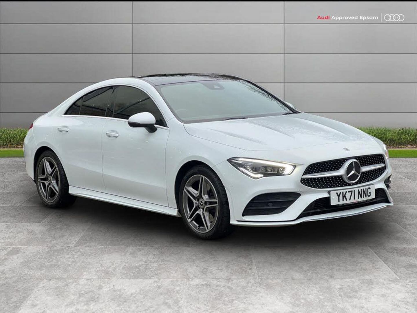 10.25 inch Instrument display with digital cockpit, 10.25 inch touchscreen central media display, Attention assist - Monitors steering behaviour and long journey fatigue, Bluetooth connection, Car wash mode, DYNAMIC SELECT with a choice of driving modes (ECO, Comfort, Sport and Individual), ECO start/stop function, Fluid level warning indicator for fuel, oil, coolant and washer fluid, Hard-disk navigation, Hey Mercedes Voice activation, Lamp failure indicator, Mercedes me connect including emergency call system, accident recovery, breakdown and maintenance management, Mercedes me remote services, Outside temperature gauge, Owners manual and service booklet in English, Pre-installation of private car share, Preinstallation for Mercedes Benz link, Radio aerial integrated into front and rear windshields, Service indicator (ASSYST), Smartphone integration with Apple CarPlay and Android auto, Traffic sign assist, Trip computer in multifunction display with current consumption indicator, Lowered comfort suspension, Rear axle multi-link, DAB digital radio tuner, MBUX multimedia system with DAB digital radio and touchpad including satellite navigation, Mercedes Benz sound system (100 W) with 6 speakers, USB (type C) ports (2) in stowage compartment and 1 in front of centre console, Adaptive brake lights, AMG body styling with AMG front apron and rear apron and visible exhaust tailpipe in chrome trim elements, AMG bodystyling side skirts, Body colour bumpers, Body colour door handles, Chrome beltline strips, Chrome weather strip, Diamond radiator grille pins in chrome with silver painted louvres and chrome insert, Electric panoramic sliding sunroof, Electric windows, Electrically adjustable and heated door mirrors with integrated LED indicators, Exhaust system with 2 Visible tailpipe trim elements and rear apron with trim in chrome, Headlamp assist automatic headlamp activation, Heated glass rear windscreen + timer control, High level LED third brake light, Integrated LED daytime running lights, Interior mirror with black reading lamps and frameless, LED tail lamp, Multibeam LED headlamps with adaptive highbeam assist plus, Privacy glass with dark tinting on rear side windows and rear window, Rain sensing windscreen wipers with two sensitivity settings, Rear fog lamp, Window line trim strip in chrome, 3 spoke flattened bottom nappa leather multifunction steering wheel with perforated leather in grip area, 40:20:40 split folding rear seat backrests, Air conditioning - Two zone thermotronic luxury automatic climate control with display, Air vents with surround in silver chrome, Automatic child seat recognition sensor, Black roof lining, Brushed stainless steel sports pedals with rubber studs, Electrically adjustable front memory seats including lumbar support, Floor mats with stitched AMG lettering, Front centre armrest with stowage, Galvanished gear shift paddles on steering wheel, Heated front seats, Illuminated front door sills with changeable cover, Illuminated glove compartment stowage, Interior lighting - 64 colour Ambient lighting, Luggage net on driver/front passenger seat backrest, Manually height and reach adjustable steering column, Rear armrest with two integral cup holders for drinks, Rear head restraints, Sport seats with fixed head restraints, Stowage compartment in centre console with retractable cover, Sunvisors with illuminated vanity mirrors, Touchpad on center console, Twin front cupholders, Two outer rear seat isofix and top tether child seat fixing points, Light and sight pack - CLA, Mirror pack - CLA, Parking package - CLA, Seat comfort pack - CLA, Active bonnet pedestrain safety measure which detects an impact and raises bonnet by 65mm, Adaptive brake assist with hold function and hill start assist, Anti-lock braking system (ABS), Black seat belts, Bonnet with power domes, Brake pad wear warning indicator, Childproof locks manually operated for rear doors and electrically operated for rear power windows, Crash responsive emergency lighting, Driver and front passenger head and sidebags, Driver and front passenger windowbags, Drivers knee airbag, Dual stage driver and front passenger airbags, Electric parking brake, Electronic stability programme with acceleration skid control, ESP curve dynamic assist, Front and rear seatbelt reminder, Front passenger seat occupancy sensor, Three point rear seat belts, Tyre pressure monitoring system, Warning triangle and first aid kit, Remote central locking and crash sensor with emergency opening function, Urban guard vehicle protection system with immobiliser and interior protection, Light aluminium with longitudinal grain interior trim, 18" 5 twin spoke design alloy wheels painted in titanium grey with high sheen finish, Summer tyres, Tirefit tyre sealant kit