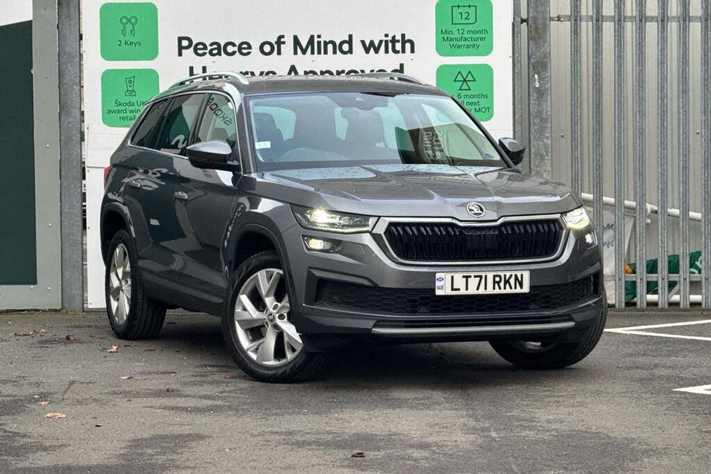 Metallic paint, Metallic - Graphite grey, Leather - Black, Aero front windscreen wipers with intermittent function, Aero rear window wiper, Electric front and rear windows, Heated rear window, Privacy glass, Rain and light sensors, Black wheel arch surrounds, Body colour bumpers, Body colour door mirrors and handles, Chrome front grille, Chrome roof rails with chrome window surround, Extended rear spoiler with finlets in gloss black, Invisible tailpipe, Off-road style lower front bumper element, Rear side wing doors, Safety reflectors on front and rear doors, Window control switches with black trim, Front fog lights, Full LED matrix headlights with AFS (adaptive front light system), cornering function and AWL (all weather lighting system), Headlight washers, LED daytime running lights, LED rear fog light, LED third brake light in rear spoiler, Light assistant (coming/leaving home/tunnel light), Rear LED lights (high functionality) with welcome effect and dynamic indicators, Electronic parking brake with hill start assist, Emergency rear braking signal, ESC (incl. ABS+MSR+ASR+EDS+HBA+DSR+RBS+MKB), Front assist with autonomous emergency braking, Hill hold control, Rear disc brakes, Speed limiter, Auto dimming rear view mirror, Auto door release and activation of warning lights in the event of an accident, Child locks on rear doors, Driver and front passenger airbag with knee airbag and front passenger airbag deactivation, Front side airbags with curtain airbags, Fuel cut off safety device, Height adjustable front 3 point seatbelts + pretensioners, Safety vest holder in door, Seat belt reminder for all seats, Three point rear seat belts, Two tone horn, Tyre pressure monitor, Bluetooth system, E-call, Smartlink wireless for apple carplay and wired for android auto, Wireless charging, 8 Speakers, DAB Digital radio, ECO Stop/start function, Tailgate unlocking from outside, Exterior temperature indicator, USB C Port x 2 in front centre console, Grey stitching in dashboard, Linear diamonds decorative inserts, 2 seat bench in 3rd row, 3 seat bench in 2nd row, 60:40 foldable rear seat with sliding adjustment and backrest angle adjustment, Height adjustable front headrests, Isofix child seat fittings in outer rear seats with top tether, Single front passenger seat, Three rear height adjustable headrests, Pollen filter, 12V socket in boot, 2 rails with 2 hooks, 4 foldable roof handles with rear coat hooks, Bottle holders in door panel in the 1.5 litre front and 1 litre rear, Cargo storage compartments, Chrome headlight control button, Chrome interior door handles, Coat hooks on B pillar, Covered storage compartment on driver side, Decorative door sills in the front and rear, Front centre armrest with storage compartment, cup holder and 12V socket, Gear shift lever with chrome frame and black gloss insert, Grey stitching in front and rear armrests and door armrests + door inserts, Illuminated and cooled glovebox, Manually adjustable steering column, Net programme in boot (1x horizontal Net, 2x vertical Nets), Overhead glasses storage compartment, Rear centre armrest with cupholders, Sliding trunk cover, Small Bags on the inner sides of the front backrests, Ticket holder on A Pillar, Umbrella in door panel, Variable boot floor, Front courtesy lights, Illuminated luggage compartment, Sunvisors with illuminated vanity mirrors, Alarm with interior monitoring and tilt sensor with safe function, Anti-theft wheel bolts, Immobiliser, Keyless entry and start system (KESSY), Remote central locking with 2 keys, Temporary spare wheel (space saver)