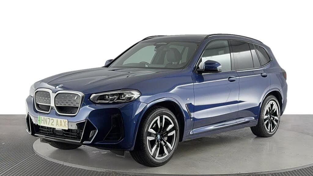 Presenting this BMW iX3 80kWh M Sport SUV 5dr Electric Auto (286 ps) in Phytonic Blue, with 38,241 miles on the clock. Enjoy impressive efficiency and performance from its fully electric powertrain, complemented by smooth automatic transmission. The exterior is enhanced by 19-inch aerodynamic Jet Black alloy wheels with bi-colour inserts, offering both visual appeal and improved efficiency. Practicality is assured with front and rear parking sensors, making urban driving and tight manoeuvres more straightforward. This SUVs M Sport trim ensures a refined driving experience, while the five-door layout provides versatile space for passengers and luggage. The iX3s advanced features and engaging drive deliver comfort and convenience in every journey. Hippo Approved is known for a wide selection of vehicles suited for various needs and budgets. Each car undergoes a rigorous 130-point quality and safety inspection at our state-of-the-art £3 million preparation centre, ensuring your peace of mind. Additionally, we offer tailored finance packages for personal and business use, making it easy to acquire your ideal car.