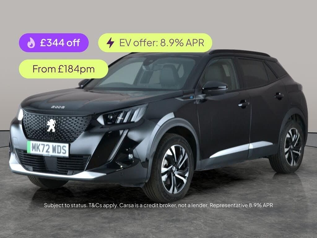 Experience the thrill of electric driving with this stylish black Peugeot E-2008 GT. Enjoy a high-tech feel with a vibrant Head-Up Display, heated seats, and advanced LED headlights. Stay connected on every journey with Apple CarPlay, Sat Nav, WiFi, and Bluetooth audio streaming. Safety comes first with Active Lane Assist, Blind Spot Assist, and Lane Departure Warning. Effortlessly park with the reversing camera and cruise in comfort using the driving modes and cruise control. The future of motoring awaits you in the E-2008. MOT to 30/10/2026. Visit our website for service history, online valuation, full vehicle specification plus multiple images. This vehicle is VAT qualifying. Any feature/option specified here is from 3rd party data. We cannot guarantee the accuracy of any specification supplied by a 3rd party. We recommend that you physically check the specification of the vehicle on site prior to purchase. This information does not form part of the buying contract. Terms & Conditions apply. We have over 2,000 cars available from our 10 national branches, check our website to see all our stock. Our Trustpilot rating is 4.4/5 with over 9,000 reviews.