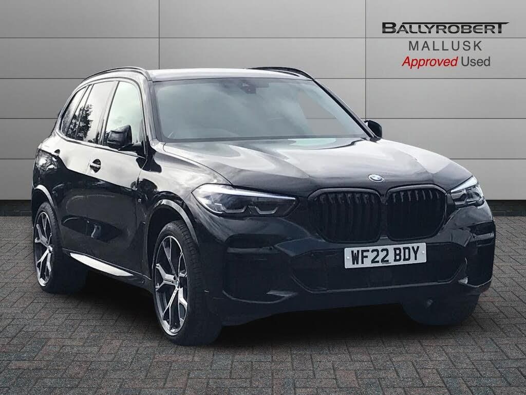 20GB hard disc drive (HDD) memory, Active guard plus, Attentiveness assist, Automatic tailgate with top hinged section open and manual bottom hinged section, BMW ConnectedDrive online services, BMW digital live cockpit professional - 12.3" digital instrument panel and 12.3" CID, with touch/voice command, BMW legal emergency call, BMW Teleservices, Brake force display, Brake pad wear indicator warning light, Cruise control with brake assist, Enhanced bluetooth with wireless charging, Front/rear park distance control, iDrive controller with shortcut buttons, Lights on warning, Oil sensor for level and grade, On board computer inc. average speed, fuel consumption, liquid crystal Info display, journey computer, outside temperature display, personal profile, Service interval indicator, Speed limit info display, Speed limiting function, Wi-Fi hotspot, 48V Mild hybrid technology, Adaptive 2-axle air suspension, Common rail technology, Diesel particulate filter, Double wishbone front axle, Drive performance control with ECO PRO comfort + sport mode, Eight speed steptronic sport automatic transmission and gearshift paddles on the steering wheel, Safety battery terminal clamp, Variable vane geometry, DAB Tuner enables digital radio reception, Favourite buttons, Hi-Fi loudspeaker system, USB connection, USB type A 1.5A in cupholder, USB Type C 3A in centre armrest, Active Air Stream kidney grille with high-gloss chrome, Adaptive air flap control bar in high-gloss black, Automatically dimming rear view mirror, BMW Individual high gloss black shadow line roof rails, Body colour bumpers, Body colour door handles, Dynamic brake lights with LED technology, Exhaust tailpipes - single, left and right with Chrome finisher, Follow me home headlight function, Front and rear electric windows with open and close fingertip control, anti trap facility and comfort closing, Heated windscreen washer jets, High beam assistant, High gloss black outer and central air intakes on front bumper with pearlescent chrome finish, High gloss black Side elements, LED daytime running lights, LED rear lights, M aerodynamic body styling, M designation on left and right front side panels, Pearlescent chrome front grille bars, Rain sensor with automatic headlight activation and windscreen wiper control, Rear side wing doors, Satin aluminium side window graphic, Third brake light in rear spoiler, Variable intermittent rear wash/wipe, Welcome light carpet, X5 on left tailgate, xDrive designation on right tailgate, 12V - Power sockets with 2x centre console and 1x luggage compartment, 3 seat bench in 2nd row, 40:20:40 split folding rear seats, Ambient interior lighting with 6 pre-designed selectable lights including dynamic function, Centre and rear interior light, Child seat ISOFIX attachment with rear outer seats includes top tether, Compartment in front of cupholder, Electric front seat adjustment with driver and front passenger memory function, Electrical steering column with adjustable height and length with activation and control on the steering column, Foldable rear centre armrest with 2 cupholders and storage compartment, Front and rear cupholders x 2, Front and rear door pockets, Front and rear door sill inlays with illuminated BMW M designation, Front and rear side armrest integrated into door trim, Front footwell lights, Front reading lights, Light inside glove compartment, Lockable glove compartment, Luggage compartment floor panel with integral storage tray, Luggage compartment lighting, M leather steering wheel, M specific key, M specific steering wheel, M specific velour floor mats, Make-up mirror lights, Multifunction controls for leather steering wheel, Multifunctional hooks, Rear head restraints, Seat back with flap pocket, Securing rings in luggage compartment, Single front passenger seat, Storage bins on all doors, Storage tray and compartment with cover in centre console, Sunvisors with illuminated vanity mirrors, Toolkit located in luggage compartment, Connected Package Professional - X5, Expanded exterior mirror pack - X5/X5 M, Non-smokers pack - X5, Airbags - driver/front passenger, rear and side, first and second row seats head airbags, front passenger seat airbag deactivation + knee airbag, Anti-lock braking system (ABS), Automatic Stability Control (ASC), Brake drying, Brake energy regeneration, Brake fade compensation, Braking pre-tensioning, Cornering brake control (CBC), Crash sensor activating central locking release, hazard warning lights, fuel cut off, interior lighting + activation of safety battery terminal clamp, Deformation zones - front and rear with door reinforcements and bumpers up to 2.5 mph, DSC - Dynamic Stability Control, Dynamic brake control, Dynamic Traction Control - DTC, Electromechanical parking brake with automatic drive away release and auto hold function, Electronic brake force distribution, Front and rear seatbelts with seatbelt stopper, seatbelt tensioner for front and outer rear seats and belt force limiter, Front head restraints with anti-whiplash, Height adjustable front seatbelts, Hill start assistant, Integrated brake system, M Sport braking system in blue high gloss + blue painted brake calipers with M designation, Mechanical child proof lock on rear doors, Passive protection for pedestrians, Seat occupancy detection for driver and passenger side, Side impact protection, Three 3 point inertia reel seatbelts, Two tone horn, Tyre pressure monitoring system, Ventilated front and rear disc brakes, Warning triangle and first aid kit, Closing system with central locking, Driver and front passenger door centre lock switch, Locking wheel bolts, Thatcham 1 alarm system with remote control and engine immobiliser, Start/stop toggle diamond shaped trim finisher in pearl chrome
