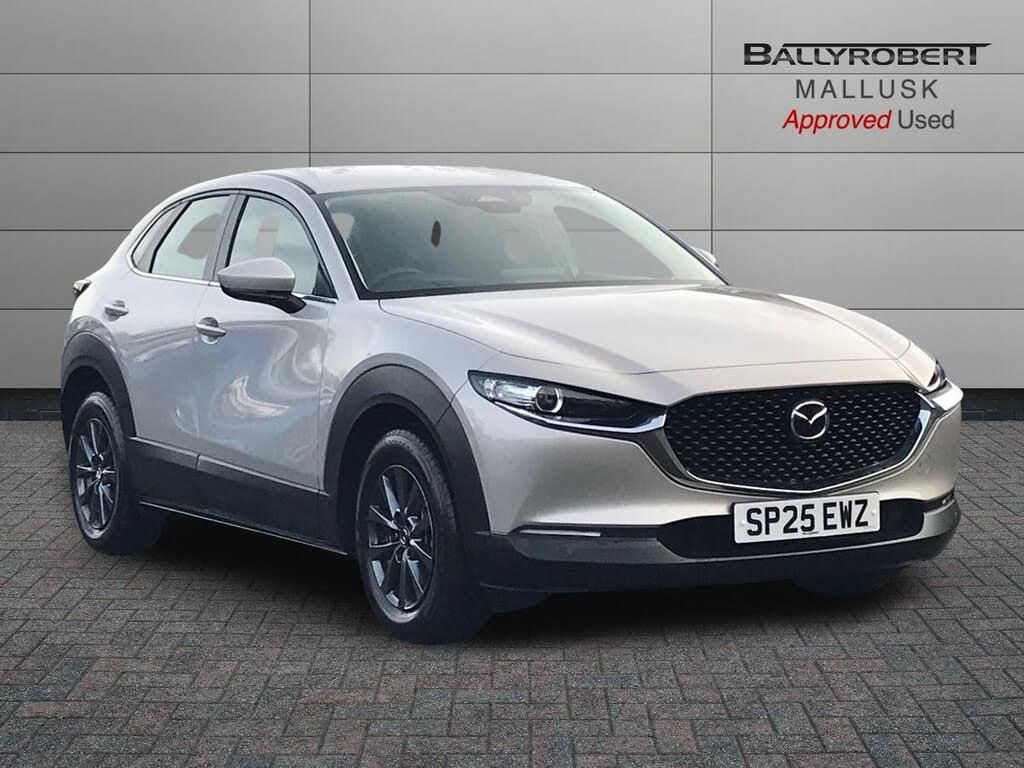 10.25" display with Mazda Connect infotainment, 7" TFT Colour driver instrument panel display, Adaptive cruise control (Mazda radar cruise control), Blind spot monitoring with rear cross traffic alert, Driver attention alert system, E-call with GPS, Emergency stop signalling system, Engine start/stop button, Integrated Alexa Voice Assistant, Integrated bluetooth, Integrated Mazda navigation system, Intelligent speed assist, Lane keep assist system (LAS) with Lane departure warning system (LDWS), Mazda connected services, PAS, Rear parking sensor, Reversing camera, Service indicator, Tailgate, Traffic sign recognition, Trip computer, Windscreen projected colour active driving display (HUD), Wireless Apple CarPlay/Android Auto, Cylinder Deactivation, i-stop, 2 x USB Type-C inputs, Mazda Multimedia System with AM / FM / DAB radio with 6 speakers, Multimedia Commander including separate volume dial, Steering wheel mounted audio/bluetooth controls, B-pillar and C-pillar garnishes in satin black finish, Body coloured, electrically adjustable, heated auto power folding door mirrors with integrated indicators, Chrome finish signature wing in front grille, Coming/leaving home lighting function, Dual bright finish exhaust tip trim, Dusk sensing headlights, Electric front/rear windows with one touch auto up/down, Front kodo turn signal, Front wipers with adjustable speed and intermittent wipe, Gloss black rear roof spoiler, LED auto headlight levelling, LED headlights with halogen daytime running lights and high beam control, LED rear combination lights, Rear fog lights, Rear side wing doors, Rear wiper, Satin black front grille, Third brake light, 12V power outlet in centre console, 3 seat bench in 2nd row, 60/40 split fold down rear seats, Cloth upholstery with interior accents, Dark cloth door panel inserts, Dashboard, door cards and front centre armrest in black cloth, Driver and front passenger visors with covered vanity mirror and driver ticket holder, Driver seat manual slide, recline, height and seat tilt adjust, Driver, front passenger and two rear door storage, Driver, Front passenger and two rear grab handles with coathooks, Folding rear centre armrest with two cup holders, Front and rear (x3) head restraints, Front and rear LED lighting, Front armrest, Front centre storage with two cupholders, Front passengers seat manual slide, recline and height adjustment, Gear shift indicator, Glovebox illumination, ISOFIX child seat anchorage points attached on outer rear seats, Leather wrapped gear shift knob, Leather wrapped steering wheel with telescopic and tilt adjustment, LED luggage compartment lighting, Light roof headlining and pillars, Manual air conditioning, Roof mounted sunglasses holder, Single front passenger seat, 3 point ELR front seat belts x2 with pretensioners, 3 point ELR rear seat belts, Anti-lock braking system (ABS), Drivers knee airbag, DSC - Dynamic Stability Control, Electronic parking brake with auto disengage function and auto hold function, Front and rear curtain airbags, Front dual stage driver and single stage front passenger airbags, Front passenger airbag cut-off switch, Front side airbags, Front smart city brake support, G-Vectoring control plus, Hill launch assist, Manual child lock in rear doors, Mild Hybrid system with regenerative braking, Seatbelt reminder for driver/front passenger and rear seats, Traction control system (TCS), Tyre pressure monitoring system (TPMS), Remote central locking with deadlocking and automatic door lock when driving, Thatcham accredited alarm and immobiliser, 16" Grey metallic alloy wheels, Emergency tyre repair kit