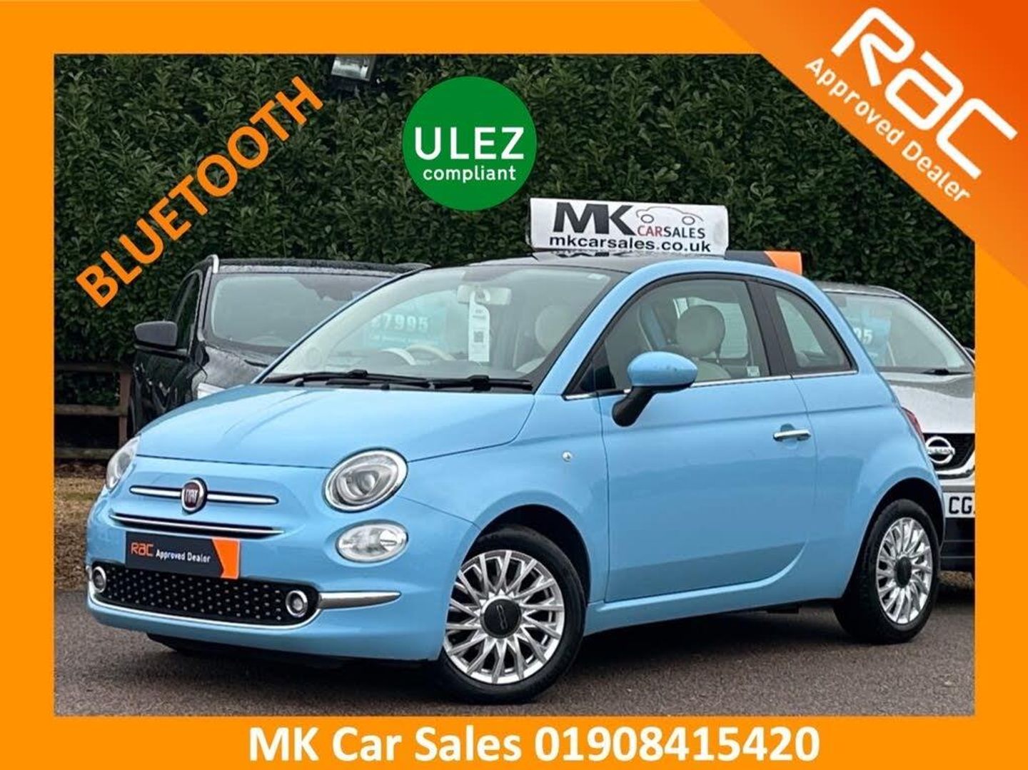 Grey + White Cloth interior.MK Car Sales are delighted to offer for sale this 2016 Fiat 500 Lounge 1.2. Finished in Volare Blue with a Grey + White Charcoal Interior. This ideal first car benefits from Bluetooth, Air Conditioning, Start Stop Technology and a Panoramic Roof. This Fiat 500 has also just had a Cambelt + Waterpump Change, is just £20 a year to Tax and is ULEZ Compliant! Please follow the link for a walk around video of this Fiat 500 https://www.youtube.com/watch?v=bvUAGLdT6fAFinance Available from a large panel of exclusive lenders all credit historys welcome! We welcome any car in Part Exchange! We also offer a complimentary 3 month RAC Warranty and 82 point RAC pre-sale inspection with all of our cars! Extended Warranties are available 12 and 24 months!