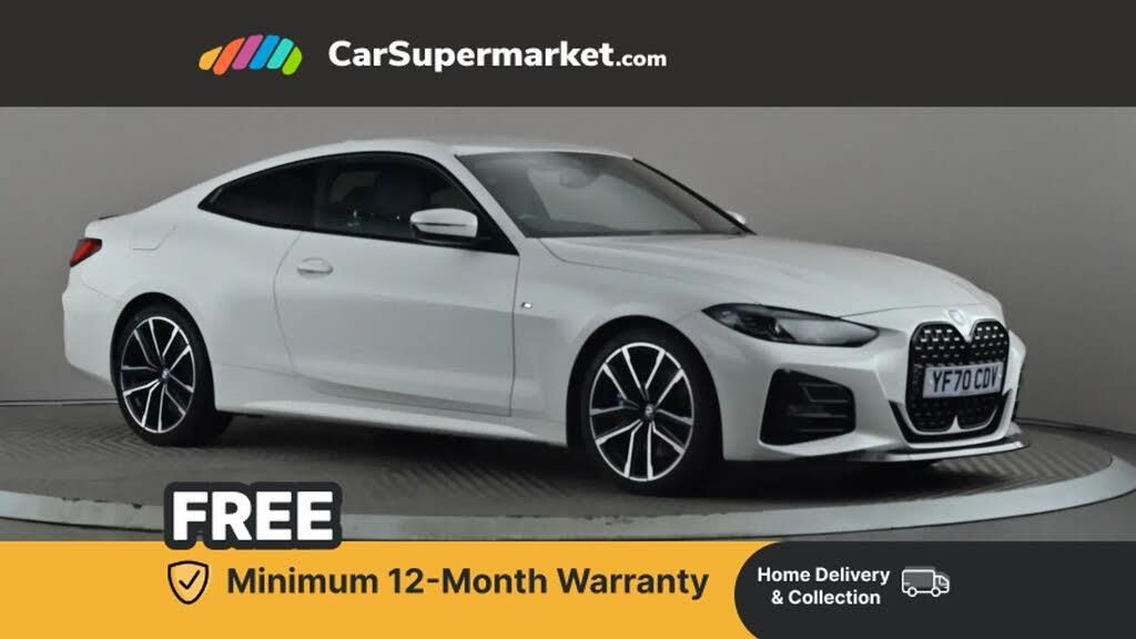 Sat Nav, BMW Live Cockpit, 19" Alloy Wheels;This 2020 BMW 4 Series 420d M Sport boasts an MOT valid until December 2026, offering excellent peace of mind for the next owner. The last service was completed on 11th November 2025 at 62,078 miles. The M Sport trim is enhanced by the M Sport Pro Package and M Sport Brakes in a striking blue high gloss finish. Inside, the 4 Series M Sport is equipped with a Technology Package, including a Head Up Display and a Harman Kardon loudspeaker system. The Comfort Package adds convenience with keyless entry and a heated steering wheel, perfect for colder journeys. This BMW also offers generous boot space, making it practical for everyday use and longer trips. These features collectively demonstrate a superior level of specification and condition compared to other vehicles of its kind.