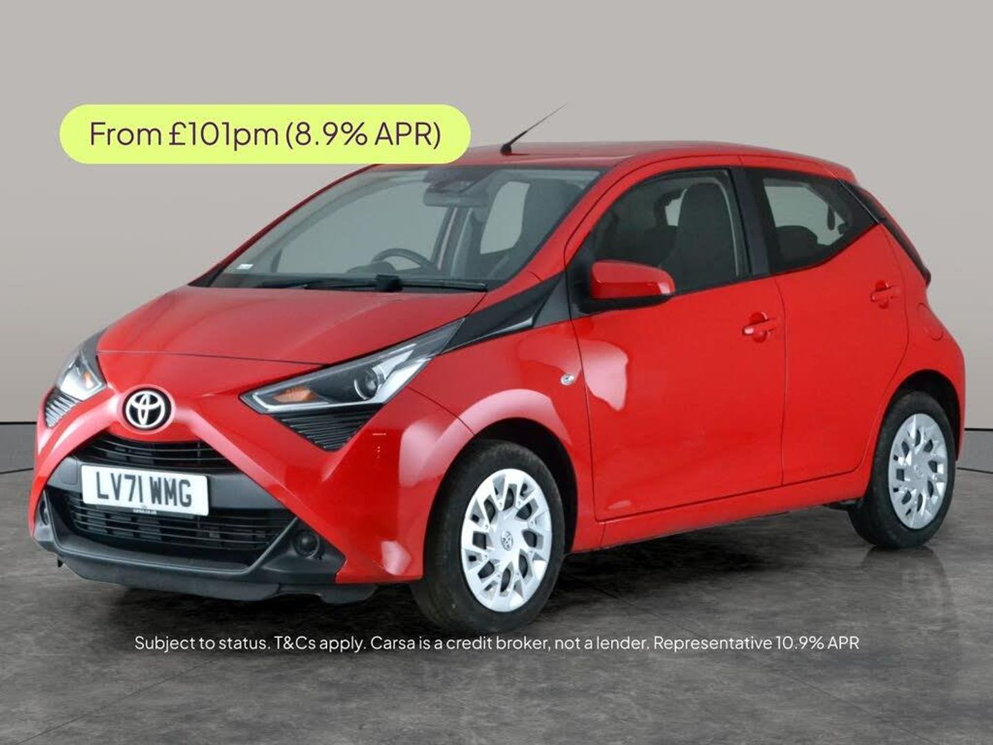 Discover the Toyota AYGO x-play hatchback in vibrant red, perfect for city driving and stylish getaways. Stay connected with Apple CarPlay and enjoy clear audio with Bluetooth streaming. Manoeuvring is easy thanks to the reversing camera, while cruise control and climate control keep your journeys comfortable. Plus, stay safe with a lane departure warning system and air conditioning for added convenience. A smart, well-equipped choice for everyday adventures. 1 service recorded, last serviced on 20/12/2025 at 20,086 miles. MOT to 05/01/2027. Visit our website for service history, online valuation, full vehicle specification plus multiple images. This vehicle is VAT qualifying. Any feature/option specified here is from 3rd party data. We cannot guarantee the accuracy of any specification supplied by a 3rd party. We recommend that you physically check the specification of the vehicle on site prior to purchase. This information does not form part of the buying contract. Terms & Conditions apply. We have over 2,000 cars available from our 10 national branches, check our website to see all our stock. Our Trustpilot rating is 4.4/5 with over 9,000 reviews.