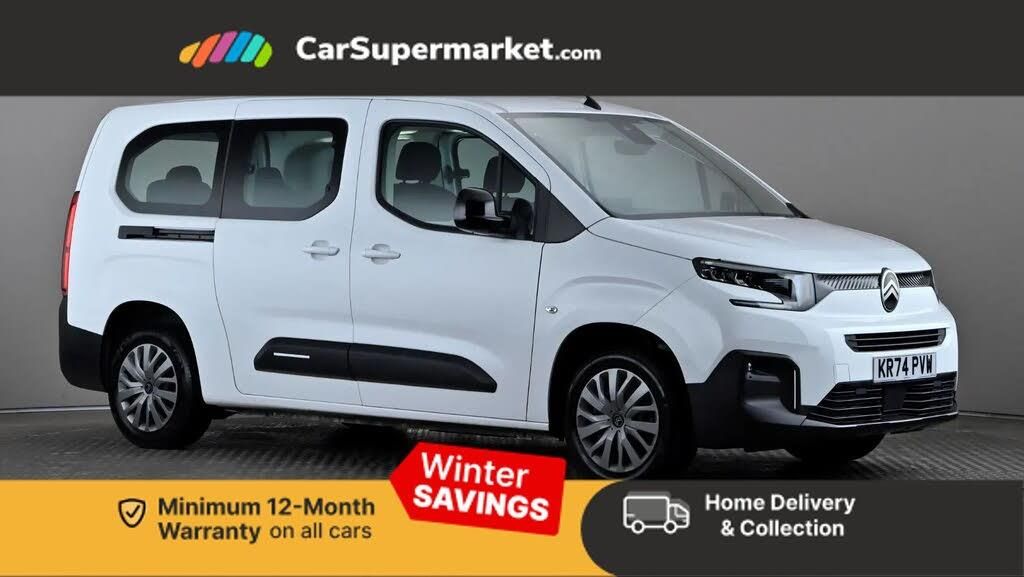10" Fully digital drivers instrument display,Active lane keeping assist,Bluetooth telephone facility,Citroen connect box emergency assist system,Driver attention alert system,Extended traffic sign recognition,Multi function trip computer,Programmable cruise control and speed limiter,Rear parking sensor,Speed limit recognition and recommendation,Wireless mirror screen with apple carplay and android auto,Mode 3 charging cable with Type 2 connectors - for accelerated charging from wall boxes and dedicated public charging points,10" HD touchscreen with voice recognition,6 speakers radio with mp3 compatible,DAB Digital radio,USB type C socket for charging and data functions,3rd brake light,Airbump,Automatic hazard light activation upon heavy brake application,Automatic headlights,Automatic intelligent beam headlights,Automatic triggered rear windscreen wiper in reverse gear,Black aero spoiler and door mirror caps,Black door rail cover,Body colour door handles,Body coloured front bumper,Chrome chevrons front grille,Electric front windows,Electric heated door mirrors,Front fog lights,Front windscreen wiper with multi speed setting,Headlights left on audible warning,Heated rear windscreen,Lateral bodywork protectors finished in black,LED daytime running lights,LED Headlights,Manual rear side windows,Rear tailgate with fixed window,Rear view mirror,Twin sliding side doors,White strip in fog light surround and on lateral bodywork protectors,1/3:2/3 Split folding 3-seater bench in row 2,12V socket,2 independent and removable sliding / tiltable third row seats with headrests,Driver and passenger dashboard mounted cup holders,Electric power steering with reach and rake adjustable steering column,Fixing rings 4 in load compartment,Foldable passenger seat with elbow rest,Front interior light with 2 reading spotlights and rear interior light with timer,Full width front overhead storage shelf,Height adjustable driver seat with adjustable lumbar support and elbow rest,Manual air conditioning,Metropolitan cloth upholstery,Remote temperature pre-conditioning,Retractable parcel shelf,Single front passenger seat,Standard grey interior ambiance,Top box glove compartment,Tray tables at the back of the front seats,Visibility pack - Berlingo,3x Isofix child seat fittings in the second row,3x3 point rear seatbelts,Active safety brake,Adaptive driver and front passenger airbags with passenger airbag deactivation function,Anti-locking braking system with electronic braking distribution and emergency braking assistance,Child locks on rear doors,Driver and front passenger thorax airbag,Electric parking brake,Electronic stability program with hill start assist,Forward collision alert,Front and rear curtain airbags,Front and rear seats seatbelt unfastened on the move audible and visual alert,Front optimised safety headrests and rear retractable headrests (x3), height adjustable,Front three point retractable seatbelts with force limiters,Front/rear disc brakes,Paddles behind steering wheel for regenerative braking selection,Tyre pressure sensor,Automatic door locking when moving off,Deadlocks,Electronic code immobiliser,16" Steel wheels with wheel trim,Emergency flat tyre repair kit