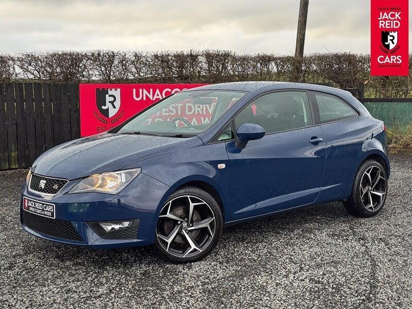 Check out what's all included in this 2017 Seat Ibiza 1.2 TSI 110 FR Technology 3dr:. Full link media system pack.. Satellite navigation system.. Bluetooth system.. Multi function steering wheel.. Exclusive FR front and rear bumpers.. Voice control system.. Front sports seats.If you like the look of this car and would like to come for a look or an unaccompanied test drive feel free to call down anytime or get in touch to make an appointment. We are open 7 days a week for your convenience!We have one of the largest numbers of cars for sale in our area with up to 200 cars in stock ready to view! We stock a variety of makes and models such as Audi, BMW, Seat, Range Rover, Mercedes, Jaguar and many more!All our cars come warranted by Jack Reid Cars meaning that we make all our decisions in house unlike unreliable warranty companies with too many terms and conditions.We look forward to hearing from you!This car is shown with an optional new alloy wheel and tyre upgrade or it can be returned to the standard wheels, whichever suits you best. Please contact sales for pricing.