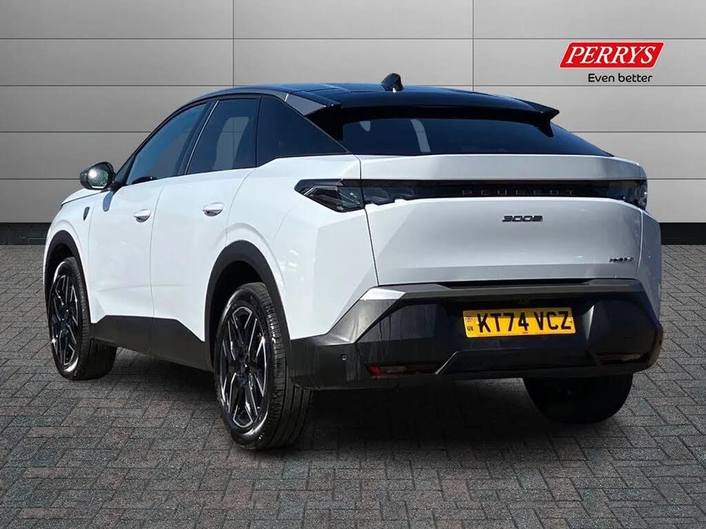 Adaptive cruise control with Stop and Go,Bluetooth with two microphones (Connect up to 2 phones),Drive modes select (Eco, normal and sport) with configurable ambient lighting,Driver foot rest,Driver profile selection,E-call,Exterior temperature indicator with ice warning,Front parking sensor,Front passenger seat detection,Hands free Smart Electric Tailgate (foot operated),Lane keep assist,Manual gear changes via steering mounted paddles,Multi function trip computer,Natural voice recognition,PEUGEOT i-Cockpit - 21" HD panoramic curved display incorporating instrument panel and touchscreen with 3colour themes,PEUGEOT i-connect advanced HD fully customisable touch screen, Navigation with Tom Tom Live updates and over the air map updates,PEUGEOT SOS and assistance,Rear parking sensor,Speed limit and traffic sign recognition and recommendation,Wireless mirror screen with apple carplay and android auto,Wireless smartphone charger with status light and ambient lighting,Dynamic stability control and electronic anti-skid system,AM/FM bi-tuner,DAB Radio (Digital Audio Broadcasting),Peugeot customisable virtual iToggles,USB-C sockets (2 x front and 2 x rear),3008 model designation badgers front and rear in basalt grey,Acoustic windscreen,Automatic hazard light activation upon heavy brake application,Automatic headlamp activation,Automatic windscreen wiper activation with interval wiping intensity control,Black diamond roof and floating effect rear spoiler finished in nera black metallic,Body coloured exterior door handles,Dark tinted privacy glass for rear door, Tailgate and Quarter windows,Door mirrors - Welcome lighting and integrated LED indicators,Electric adjustable/heated/folding door mirrors,Electrochrome rear view mirror,Flat blade wipers with magic wash integrated nozzles,Front and rear electric windows with one touch,Front grille with body coloured accents,Gloss black connecting strip between rear lights,Gloss black finish B pillar,Grained black lower door claddings and wheel arches,Heated rear window,Hybrid rear badging in basalt grey,Laminated windscreen,LED daytime running lights,LED exterior lighting,LED third brake light,Lower front and rear bumper trims in meteor grey,Orbital gloss black door mirrors,PEUGEOT shield on front wings,Pixel LED Technology headlights with adaptive high beam assist,Rain sensor,Rear full LED 3D peugeot signature claw effect lights with daylight function,Rear side wing doors,Rear wiper,12V socket in front and boot,2 cupholders in front centre console,2 rear cupholders,3 seat rear bench,4 Grab handles retractable and damped,4 tie down luggage rings,40/20/40 folding rear seat backrest with fixed base,Aluminium pedals,Arch design central console with concealed storage,Cabin high efficiency filter,Central front armrest with ventilated storage compartment and LED lighting,Chrome finish interior door handles,Compact heated multifunction steering wheel with full grain leather Iced Clay stitching, gloss black and satin chrome detailing and GT badge,Dual zone climate control,Dynamic front seats,e-Toggle compact gear selector,Electric power steering with reach and rake adjustable steering column,Glasses storage box, roof mounted,LED boot light,LED footwell lights,LED front and rear reading lights with push button control,LED Glovebox light,LED illuminated driver and passenger concealed sunvisor mirrors,Luggage cover,Luxury front and rear carpet mats with Iced Clay stitching and GT logo,Mistral black pillars and headlining,Quick launch cabin heating/cooling function,Rear air vents,Rear centre 3 point seat belt,Rear smartphone holder,Roof lining - Meteor grey,Seatbelt unfastened on the move audible and visual alert for front and rear seats,Single front passenger seat,Stainless steel PEUGEOT door sill trims,Two bag hooks,Two position boot floor,2x Isofix child seat fitting on outer rear seats with zipped cover,3x3 point rear seat belts,ABS (Anti-lock Braking System) with EBD (Electronic Brakeforce Distribution) and EBA (Emergency Braking Assistance),Advanced Emergency Braking System with radar (AEBS3) providing night detection of pedestrians and cyclists,Child locking functionality on rear doors,Driver and front passenger airbags with airbag deactivation function,Driver and front passenger side airbags,Electric parking brake,Front and rear curtain airbags,Front optimised safety headrests and 3 x rear retractable headrests with height adjustable,Front/rear disc brakes,Hill start assist,Post collision safety brake,Seatbelts - Front and rear outer seats with pyrotechnic pretensioners and force limiters,2x Keys (Lock, Unlock, Boot release function with concealed key),Acoustic vehicle alert system (AVAS),Automatic door locking when moving off,Deadlocking system,Electronic code immobiliser,Exterior passenger door lock,Locking wheel nuts,Peugeot Open and Go (keyless entry and push button start),Seatbelts reminder and unfastend warning indicator