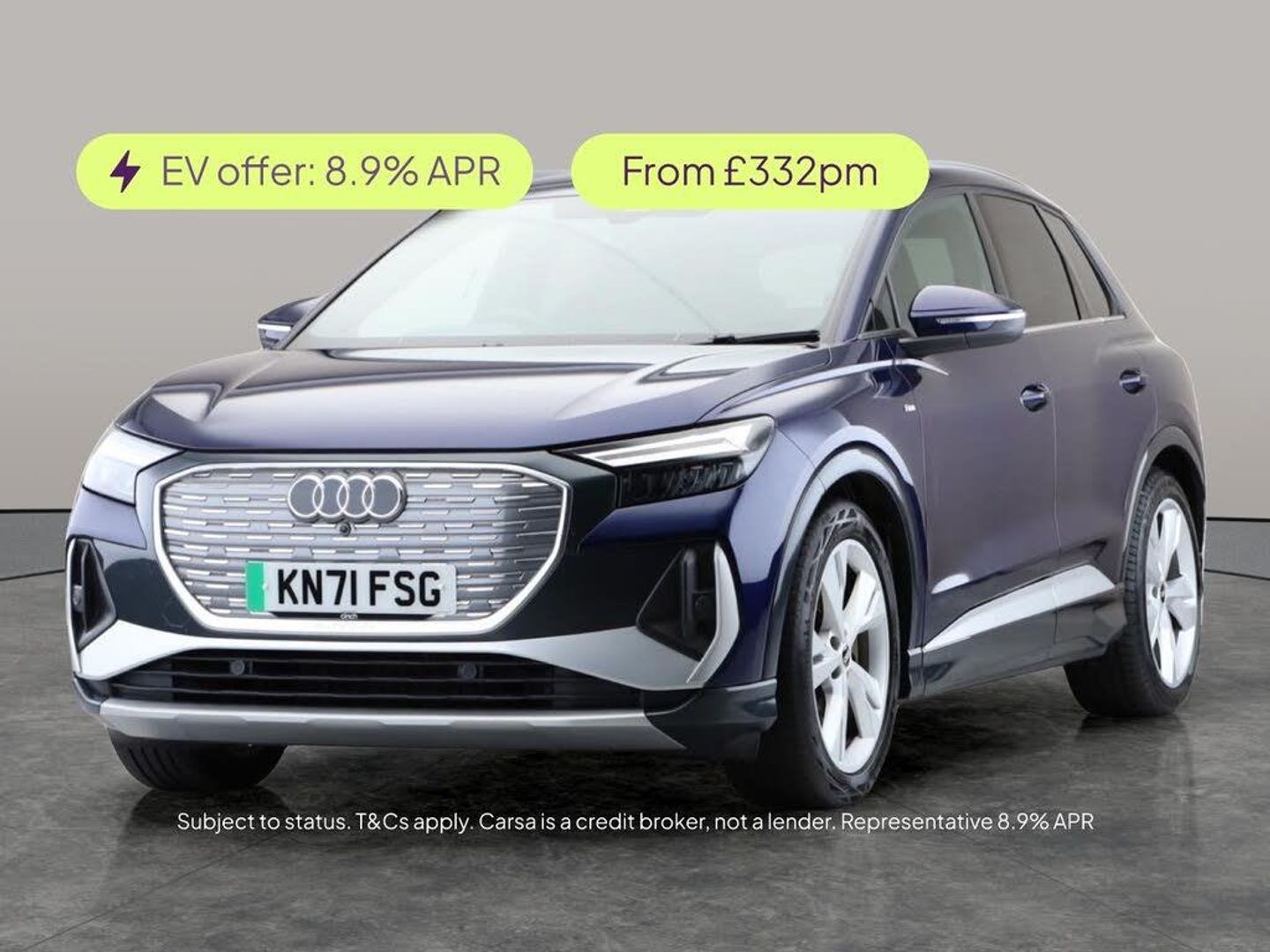 Experience the future with this striking blue Audi Q4 E-tron. Enjoy top-tier comfort with heated seats and immerse yourself in an upgraded sound system while the MMI Navigation Plus and sat nav keep every journey smooth. Stay safe with lane departure warning and traffic sign recognition, while Bluetooth and multiple driving modes add convenience and fun. Comes complete with charging leads and air conditioning to keep you comfortable wherever you go. Take your driving to a new level in this stylish, all-electric SUV. 3 services recorded, last serviced on 29/04/2025 at 58,029 miles. MOT to 29/09/2026. Visit our website for service history, online valuation, full vehicle specification plus multiple images. Certain features listed may be available via subscription packages at extra costs, please consult with Audi for details. This vehicle is VAT qualifying. Any feature/option specified here is from 3rd party data. We cannot guarantee the accuracy of any specification supplied by a 3rd party. We recommend that you physically check the specification of the vehicle on site prior to purchase. This information does not form part of the buying contract. Terms & Conditions apply. We have over 2,000 cars available from our 10 national branches, check our website to see all our stock. Our Trustpilot rating is 4.4/5 with over 9,000 reviews.