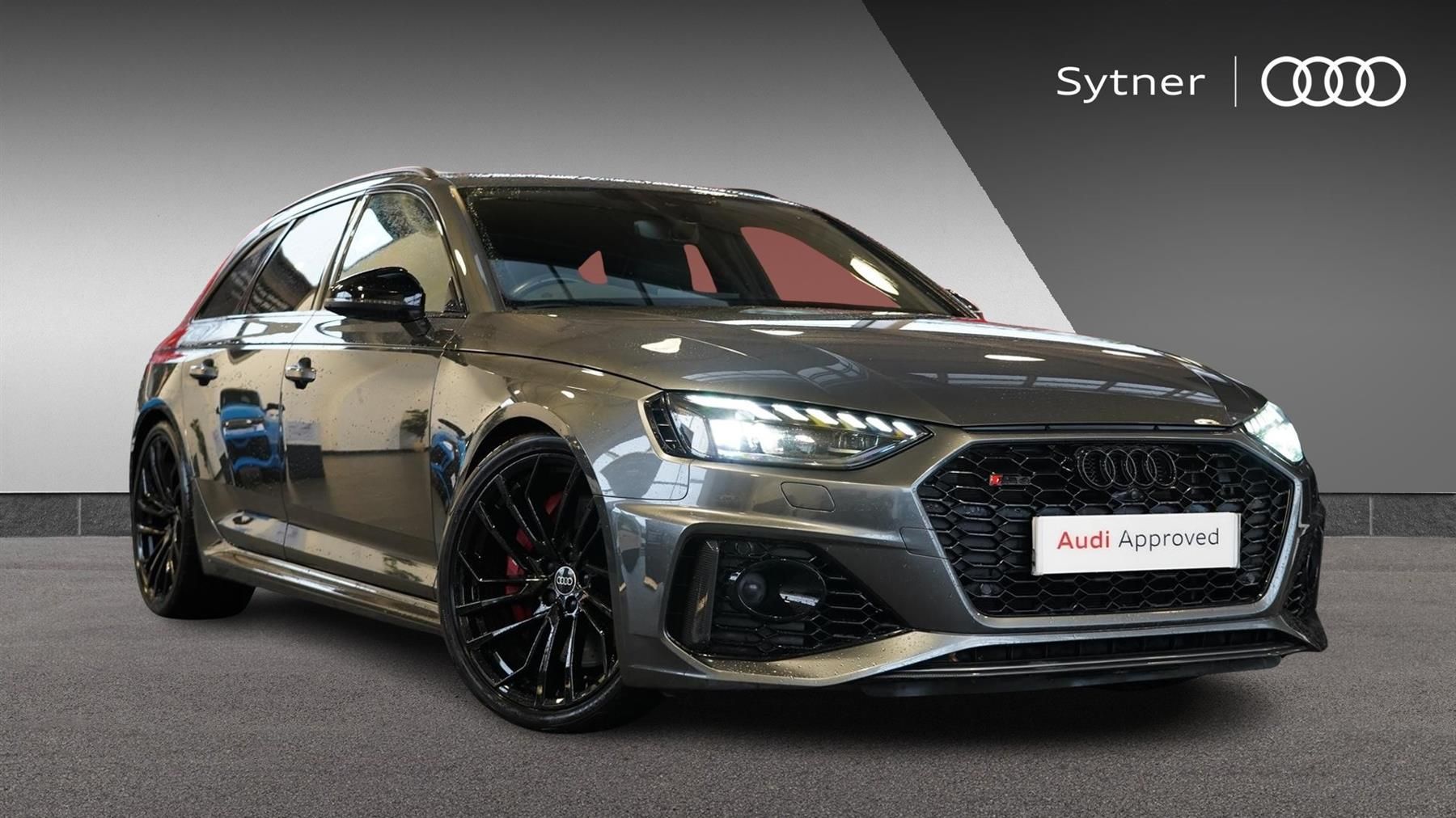 Reserve Online,360-degree cameras,Extended LED Interior Light Pack,Bang & Olufsen premium sound system,Red brake calipers,Audi virtual cockpit with RS specific display,Audi smartphone interface,MMI Navigation plus with MMI touch includes 10.1" high resolution colour MMI display 3D map,Audi matrix LED headlights with LED rear lights + dynamic front and rear indicators,Auto dimming rear view mirror,Privacy glass with rear acoustic glazing,RS4 dual branch chrome tailpipes with left and right oval pipes,Deluxe 3 zone electronic climate control,3 spoke multifunction plus leather steering wheel with heating and RS badging,Fine nappa leather with contrast honey comb stitching + super sports seats with pneumatic massage function,Heated front seats,20" 5 segment spoke evo design glossy black sport alloy wheels