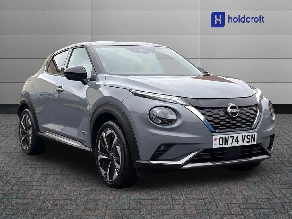 12.3" full colour TFT screen combimeter,Drive modes select (Eco, normal and sport),e-Pedal step,Emergency and breakdown call,EV mode switch,Front parking sensor,Intelligent driver alert system,Intelligent lane intervention,Lane departure warning system,Nissan connect 12.3" touch screen entertainment system,Nissan connect nav with TomTom traffic,Nissan connect services,Outside temperature sensor,Power Steering,Rear parking sensor,Stop/start button,Traffic sign recognition,Trip computer,Voice recognition,WiFi connectivity,Wireless Apple CarPlay and Google Android auto,Wireless Smartphone charger,10 Bose speakers 6 speakers and 2 headrest speakers for driver/passenger seats,2 X Rear console USB port,Bluetooth system, USB, Aux-in and 12V socket,Bose personal sound stage control,DAB Digital radio,Auto dimming frameless rear view mirror,Automatic hazard signal with emergency stop signal,Body colour door handles,Electrically adjustable door mirrors with integrated indicators,Follow me home headlights,Front and rear electric window with one touch driver window,Heated and auto folding door mirrors,High beam assist,LED 3rd brake light,LED daytime running lights,LED front fog lights,LED headlamps,LED rear fog lamp,LED rear lamps,One touch passenger window,Rain sensor windscreen wipers,Rear privacy glass,Rear side wing doors,Rear wiper,Roof spoiler,Shark fin roof antenna in solid Black,Three blink turn signal,3 height adjustable rear headrests,3 seat bench in 2nd row,60/40 split folding rear seat,Automatic climate control,Card holder on driver sunvisor,Door ambient lighting,Driver seat back pocket,Driver side rear coat hanger,Driver/passenger sunvisors and vanity mirrors,Front and rear cabin lights,Front armrest,Front door pockets with bottle holders,Front head restraints,Front/rear passenger grab handles,Gear console ambient circle lighting,Height adjustable driver's seat,Internal chrome door handles,Leather gearshift knob,Luggage board,Luggage space lighting,Monoform sporty seats,Multifunction steering wheel,Passenger seat back pocket,Rear door bottle holders,Single front passenger seat,Smooth synthetic leather steering wheel,Synthetic leather kneepad,Telescopic steering wheel adjustment,Two cupholders in front centre console,Two rear isofix child seat anchorage points with top tether,Welcome light and console tray ambient lighting,Heat pack with height adjustable passenger seats - Juke,Interior personalisation pack - Juke,ProPilot pack - Juke Auto,Satin grey exterior personalisation pack - Juke,ABS with EBD and brake assist,Active ride control,Active Trace Control,Driver and passenger airbags,Driver and passenger side airbags,Electric handbrake with auto hold function,Electronic Stability Programme (ESP),Front and rear curtain airbags,Height adjustable seatbelts,Hill start assist,Intelligent emergency braking with pedestrian and cyclist recognition,Rear door child safety locks,Seatbelt reminder for driver/front passenger and rear seats,Three 3 point rear seatbelts,Traction control,Tyre pressure monitoring system,VDC Dynamic Vehicle Control,Alarm,Immobiliser,Intelligent key and start push button with walk away lock and approach unlock functions,Remote central locking,19" Aero alloy wheels,Tyre puncture repair kit