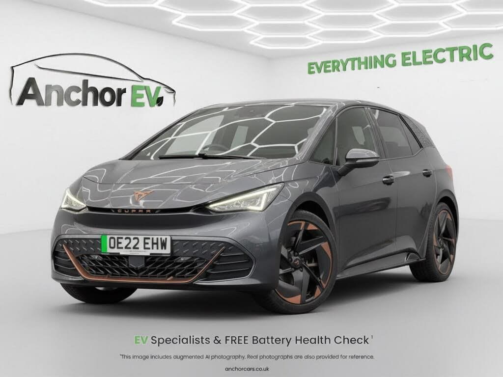 This 2022 Cupra Born V3 E-Boost is now available from Anchor EV and brings serious electric performance wrapped in bold hot hatch styling. With a 77kWh battery and a punchy 230 bhp under your right foot, it delivers sharp acceleration and a refined, responsive drive all with zero emissions. The five-door layout and spacious interior make it just as practical as it is exciting, and it seats four comfortably. Owners love its sporty feel, eye-catching design and long-range capability, and this example stands out for value at this level of performance and spec. To find out more or arrange a test drive, call Anchor EV on 0118 443 3024. Were part of Anchor Cars Ltd the group behind Anchor Cars Tadley and Vanlux and proud winners of Used Car Supermarket of the Year 2025 with an Excellent 5-star AutoTrader rating. We offer UK-wide delivery and every car comes with a care pack and our customer guarantee, giving you total peace of mind from start to finish.