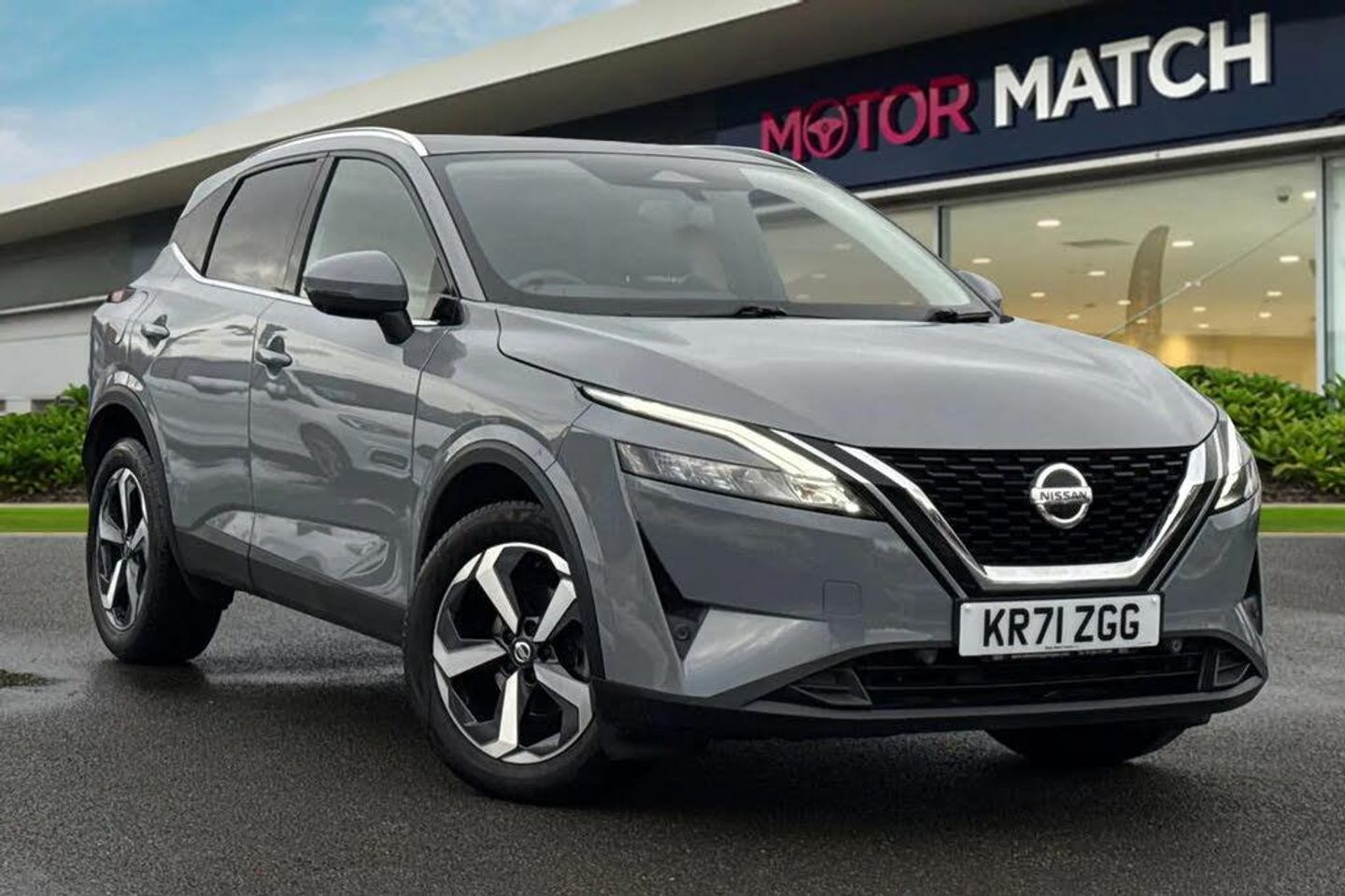Available now from Motor Match Chester, with a full dealership service history present, having been serviced by Nissan at 8969, 14539, 20286 and 25744 miles. This superb Nissan Qashqai N-Connecta XTRON comes finished in the stunning Ceramic Grey metallic paint, which looks fantastic paired with the 18in diamond-cut alloy wheels. At the front of the vehicle you'll find the automatic LED headlights and rain-sensing wipers, offering superb visibility. The Qashqai also benefits from electrically adjustable, heated and power-folding door mirrors. The interior offers comfy full cloth upholstery, with sports seats offering excellent support. Manual seat adjustment is provided, and Isofix mounting points can be found on the outer rear seats. The Qashqai is very practical with plenty of legroom for passengers, and a roomy boot with additional storage beneath the boot floor. Dual-zone climate control is also provided to keep all passengers comfortable. The interior is also flooded with light thanks to the fixed glass sunroof! This Nissan also boasts an amazing media system, providing access to DAB radio, Bluetooth interface and USB connectivity, so you've got plenty of choice when it comes to music. You've also got the reliable satellite navigation system on board, along with the ability to connect smartphones to use Apple CarPlay and Android Auto, to access your phones apps and maps on the go. This car is equipped with cruise control and lane keep assist which come in handy for motorway drives, while the front and rear parking sensors and 360-degree camera alert you to any obstructions when reversing! This vehicle is compliant with Clean Air Zone (CAZ) or Ultra Low Emission Zone (ULEZ) regulations, meaning it produces low emissions and helps to improve air quality in our cities. This car comes with our Motor Match Promise including 30 days or 1,000 mile warranty, whichever comes first, along with flexible finance packages available* Terms & conditions apply. RAC Extended warranties and Click & Collect is also available.
