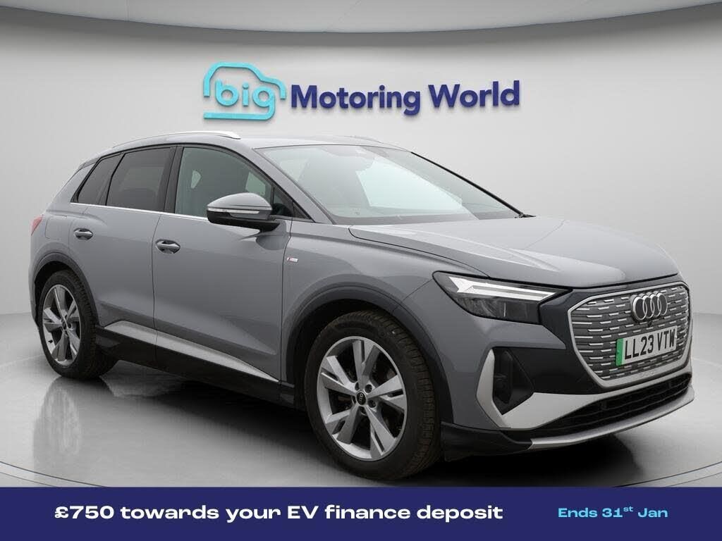 Part Leather Seats,Apple CarPl-Our Audi Q4 e-tron is finished in Grey. Specification includes a range of fantastic features including Part Leather Seats, Apple CarPlay, Lane Assist, S Line Body Styling, Android Auto, Satellite Navigation, Privacy Glass, Heated Seats, Bluetooth, Parking Sensors Specification information is supplied by CAPHPI and may vary to the actual car. This data does not form any part of a buying contact. Please check specification prior to purchase in-store. The MOT is valid until December 2026, visit bigmotoringworld.co.uk for more photos, a 360 tour, service history and a free HPI report.Were BIG on peace of mind and this Grey Audi Q4 e-tron has completed our comprehensive 200 point inspection and passed all checks. Its ready for you to drive away with immediate collection in-store. We include a 90-day warranty as standard plus an option to extend for up to 3 years.Reserve this car exclusively for you, safely and securely at bigmotoringworld.co.uk, with a fully refundable £99 deposit. Test drive before you buy, with no commitment, no hassle and a completely haggle free experience. Still searching and want to see thousands more cars? We are BIG on choice with over 8000 cars to choose from.Visit our award winning web site bigmotoringworld.co.uk.Were Big Motoring World and were BIG on what matters to you.