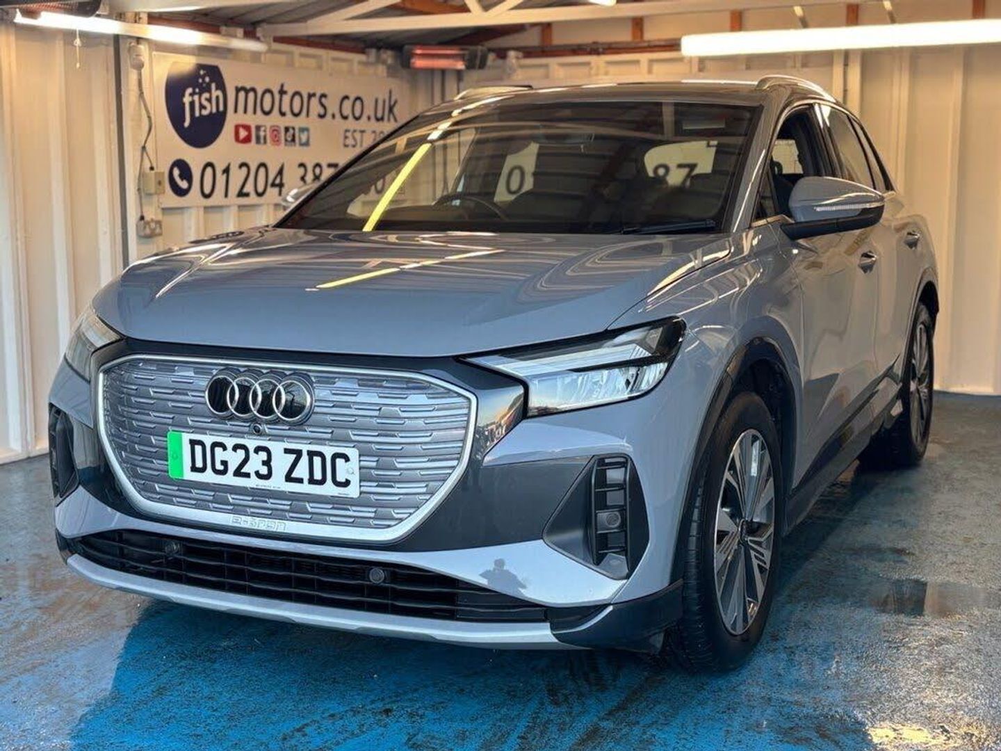 2 KEYS+1 OWNER FROM NEW+ALLOYS+HISTORY+PARK CONTROL+LED LIGHTS+NAV+COMFORT PACK+MEDIA+BLUETOOTH+SPORTS SEATS+CLIMATE+CRUISE+HEATED FRONT SEATS+HPI CLEAR+VOSA MOT HISTORY PRINTOUT, PART EXCHANGE WELCOME, FULL DEALER FACILITIES, CLEAN CAR+NICE DRIVE+RAC CHECKED+good mpg,The car is in very good condition in and out . Bodywork and interior clean for age and mileage . Interior is clean and tyres good ,Engine and gearbox in good order. This 2023 Audi Q4 e-tron Sport is a superb example, having had only one owner since new. This electric SUV offers a compelling blend of advanced technology and practicality. With a 55 kWh battery, it provides a maximum range of 217 miles, making it suitable for both daily commutes and longer journeys. Charging is convenient, with a full charge at home taking approximately 7 hours and 30 minutes using a 7kW charger, while rapid public charging can replenish the battery from empty to 80% in as little as 32 minutes. The MOT is valid until April 2026, offering peace of mind. Inside, you'll find the Audi Smartphone Interface, seamlessly integrating your Android Auto or Apple CarPlay for easy access to navigation and entertainment. The Bluetooth Interface allows for effortless phone connectivity. Parking is made simpler with rear parking sensors, and the 3-zone electronic climate control ensures comfort for all occupants. For added comfort on colder days, the front seats are heated. These features collectively enhance the driving experience, demonstrating the thoughtful design and premium feel that sets this Audi Q4 e-tron apart. WE AS A COMPANY PRIDE OURSELVES IN GIVING THE BEST POSSIBLE SERVICE AS OUR 1000,S OF GREAT REVIEWS SHOW , SEE OUR TESTIMONIALS PAGE AT WWW.FISHMOTORS.CO.UK TODAY ! IF YOU REQUIRE MORE PICTURES AND AN IN DEPTH VIDEO PLEASE CONTACT OUR FRIENDLY SALES TEAM WHO WILL BE MORE THAN HAPPY TO HELP YOU . CONTACT 01204 387600 , SALES@FISHMOTORS.CO.UK AND FACEBOOK MESSANGER . NATIONWIDE DEILVERIES AVAILABLE ON REQUEST , PLEASE CONTACT US FOR MORE INFORMATION . PERSONAL VIDEO AVAILABLE FOR ANY CAR BY REQUEST - FISH MOTORS BURY NEW ROAD BOLTON BL2 2BD. 01204387600 , ALL FORMS OF PAYMENT ACCEPTED, FINANCE ARRANGED LOW APR, CLICK OUR WEBSITE LINK FOR MORE CHOICE ! ALL OUR CARS AND INFORMATION ARE CHECKED HOWEVER PLEASE NOTE INPUT ERRORS CAN OCCUR AND IT IS IMPORTANT YOU CHECK WITH A MEMBER OF STAFF THE MILEAGE , CONDITION AND SPECIFICATION OF THE CAR BEFORE PURCHASE .