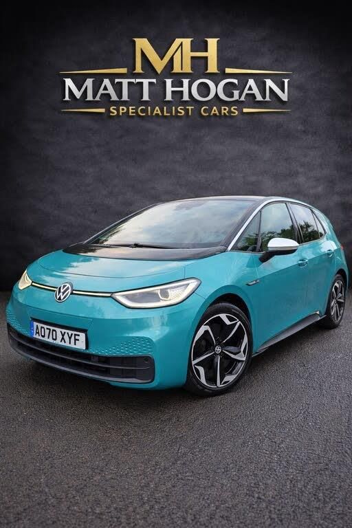 Flow - Art Velours - Cloth Style - Platinum Grey-Dusty Grey Dark - Interior Black and Black, Mode 2 - 3-Pin Mains - Charging Cable, Makena Turquoise with Black Roof, 10in Infotainment System, 19in Alloy Wheels - Andoya, ABS - Anti-Lock Braking System, Adaptive Cruise Control ACC including Front Assist - Radar Sensor Controlled Distance - Monitoring System - City Emergency Braking System - Cruise Control and Speed Limiter, Airbag - Front Centre, Airbags - Curtain Front, Airbags - Driver, Airbags - Front Side, Airbags - Passenger, Armrest Integrated into Front Seats, Black Roof, Body Coloured Bumpers - Door Handles and Door Mirrors with Integrated Indicators, Car2X Technology, Carpet Mats - Front and Rear, Comfort Package Plus, DAB Digital Radio, Design Package, Digital Dashboard, Driver Alert System, Driver Profile Selection with Personalisation, Electric Windows - Front and Rear, Electronic Parking Brake with Auto Hold Function, Exterior - 1ST Edition Styling, Exterior E-Sound, Exterior Silver Decal Style Pack, Free WeConnect Start for First 3 Years, Heated Rear Window, ID Light, Infotainment Package, Interior - 1ST Edition Styling, Interior Ambient Lighting - 10 Colours, Lane Assist, Mode 3 - 32-AMP - 7.2kW Charging Cable for Charging at Public Charge Points, NCAP Pack - Forward Collision Warning - Extended and Proactive Pedestrian Protection, Natural Voice Control, Parking Sensors - Front and Rear, Pedals - Pause and Play, Power Assisted Steering - Speed Sensitive, Remote Tailgate Unlocking, Security and Service - SOS Buttons, Special WeCharge Conditions for ID 3 Customers within First 3 Years, Steering Wheel - Leather Trimmed Heated Multifunction, Tyre Mobility Kit, We Connect ID App, Wireless App Connect