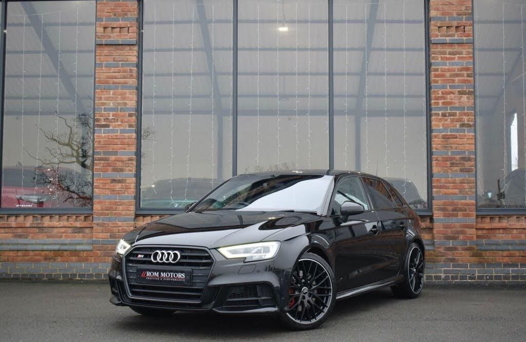 Split Folding Rear Seat Bench, Audi Parking System Plus, Brilliant Black, Fine Nappa Leather - S Embossed Sports Seats - Black with Rock Grey Stitching, Technology Pack, Rear-View Camera, 19in Alloy Wheels - 10-Y-Spoke Design Audi Sport - Gloss Black - Diamond Cut Finish, Brake Calipers Painted in Red with S3 Logo at the Front, 18in Alloy Wheels - 5-Arm Trapezoid Design Audi Sport in Gloss Anthracite Black - Diamond Cut Finish, 2 x USB Charging Ports and 1 x AUX-IN, 6-Airbag System with Knee Airbag for Driver, Aluminium Interior Elements, Anti Theft Locking Wheel Bolts, Anti-Theft Alarm, Audi Beam, Audi Connect, Audi Connect Infotainment Services - 3 Month Trial, Audi Drive Select, Audi Smartphone Interface, Auto-Dimming Rear-View Mirror with Light and Rain Sensor, Bang and Olufsen Sound System, Black Styling Package, Bluetooth Interface, Brake Calipers Painted in Black with S3 Logo at the Front, CD Drive, Cloth Headlining, Colour Drivers Information System - DIS, Cruise Control, DAB Digital Radio, Door Mirrors - Black Housing, Door Mirrors - Electrically Adjustable and Heated with Integrated LED Side Indicators, Dual-Zone Electronic Climate Control, ESC - Electronic Stabilisation Control inc ABS - ASR and EDL, Electric Windows - Front and Rear, Electromechanical Parking Brake, Exhaust Tailpipe - Dual-Branch Oval Twin with Chrome Finish, First Aid Kit and Warning Triangle, Front Centre Armrest, Front and Rear Floor Mats, Headlights Washers, Heated Front Seats, Heated Windscreen Washer Jets, Hill Hold Assist, ISOFIX Child Seat Mounting and Top Tether, Illuminated Door Sill Trims with S Logo, Inlays - Matt Brushed Aluminium, Instrument Dials with S3 Logo, LED Headlights with LED Rear Lights and Dynamic Rear Indicators, LED Interior Light Package, Lashing Points in Luggage Compartment, MMI Navigation - SD Card Based, MMI Radio Plus with 7in Electrically Retractable Colour MMI Screen, Manual Seat Adjustment, Non-Smoking Package, Pedals in Stainless Steel, Privacy Glass, Progressive Steering, Rear Parking Sensors, Remote Central Locking with 2 Fold Away Keys, S Design Body Styling, S Sport Suspension, Seat Belt Monitoring, Split Folding Rear Seat Bench - 60-40 or Fully, Steering Wheel - 3-Spoke Leather-Multifunction-Flat Bottomed-Shift Paddles, Storage Compartments in the Door Side Trims-Centre Console-Under Drivers Seat, Storage Package, Tool Kit, Tyre Pressure Warning Light, Tyre Repair Kit