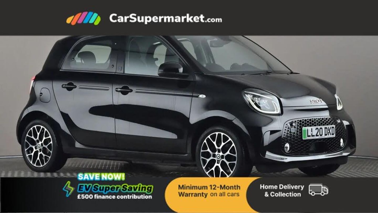 Cruise Control, Digital Radio, Sat Nav, Android Auto, Bluetooth, Parking Sensors;This 2020 Smart forfour Prime Exclusive is a standout example, boasting exceptionally low mileage for its age, having covered just 14,671 miles. As an all electric model, it features a 18 kWh battery offering a maximum range of 72 miles when new. Recharging is convenient, with a full charge at home using a 7kW charger taking approximately 3 hours and 46 minutes. This vehicle comes with an MOT valid until July 2026 and has a clear vehicle history check. Its last service was completed on 16 January 2026 at 14,671 miles.