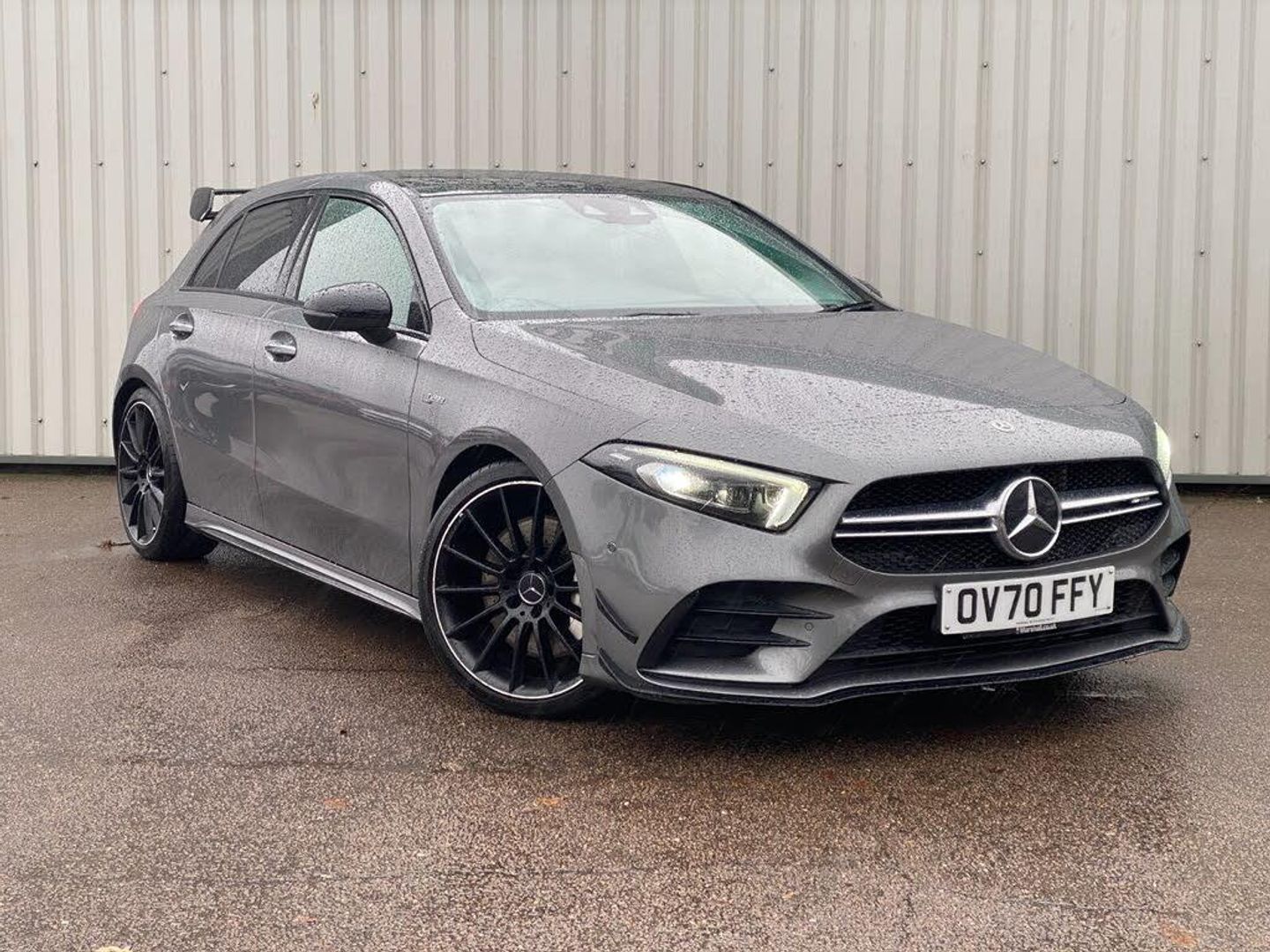 10.25" Digital instrument cluster display screen, 10.25" media display, 180 degree rear view camera with parking guidelines, Active lane keep assist, Active park assist with parktronic system including front and rear parking sensors, Attention assist, Brake pad wear indicator warning light, Car wash mode, Direct steering, Dual bluetooth interfaces, DYNAMIC SELECT with driving programs (Slippery, Comfort, Sport, Sport+ and Individual), ECO start/stop function, Fluid level warning indicator for fuel, oil, coolant and washer fluid, Hard-disk navigation, Hey Mercedes Voice activation, Lamp failure indicator, MBUX augmented reality for navigation, Mercedes me connect including emergency call system, accident recovery, breakdown and maintenance management, Outside temperature gauge, Owners manual in English, Pre-installation for private car sharing, Pre-installation for Vehicle Monitoring, Pre-installation for Vehicle Setup, Preinstallation for Mercedes Benz link, Service indicator (ASSYST), Smartphone integration with Apple CarPlay and Android auto, Traffic sign assist, Trip computer, Wireless charging, Rear axle multi-link, 2 USB ports (type C) in rear stowage compartment and one in front of center console, Burmester surround sound system - 590W, DAB Digital radio, MBUX multimedia system with DAB digital radio and touchpad including satellite navigation, 4 Electric Front and Rear windows, Adaptive brake lights, AMG bodystyling - Front apron with splitter in chrome, rear apron with chrome trim and chrome visible trim elements in tailpipe, AMG Front apron with flics as air deflector elements on the outer air intakes, AMG radiator grille with twin blade lamella and AMG Lettering, AMG Rear apron with specific diffuser look with four vertical fins and two round chrome plated tailpipe trim elements with a diameter of 90 mm, AMG spoiler lip on roof, AMG Sports exhaust system with two round tailpipes measuring 90 mm in diameter attached in rear apron, AMG lettering plus ribbing on the inside of the, Black weather strip, Body colour bumpers, Body colour door handles, Body colour side skirt, Electric adjustable and heated door mirrors with integrated LED side indicators, Front wings wheel arches with TURBO 4MATIC lettering, Headlamp assist automatic headlamp activation, Heated glass rear windscreen + timer control, High gloss black beltline, Illuminated front door sill panels with Mercedes-Benz lettering, LED high performance headlamps with integrated LED daytime running lights, LED tail lamp, LED third brake light, Multibeam LED with adaptive highbeam assist plus, Panoramic sliding sunroof, Privacy glass, Radio aerial, Rain sensing windscreen wipers with two sensitivity settings, Rear fog lights, Rear wiper, Trim elements on louvres in outer air inlets in silver chrome, Wider wheel arches for AMG wheels, Window line trim strip in high gloss black, 40:20:40 split folding rear seats, AMG Performance steering wheel in nappa leather, Auto Mercedes-Benz child seat recognition sensor, Black air vents with surround in silver chrome, Black roof lining, Brushed stainless steel sports pedals with rubber studs, Controller on centre console with chrome surround, Electrically adjustable front memory seats including lumbar support, Floor mats with stitched edging and AMG lettering, Front centre armrest with storage compartment, Front seat backs luggage nets, Front seat cushion length adjustment, Heated front seats, Height/reach adjustable steering column, Interior lighting - 64 colour Ambient lighting, Interior mirror with reading lamps in black and frameless, Rear armrest with 2 cupholders, Rear head restraints, Seat occupancy sensor for front passenger seat, Silver coloured aluminium gear shift paddles on steering wheel, Sports seats with integrated headrests, Stowage compartment in centre console with retractable cover, Sunvisors with illuminated vanity mirrors, Touchpad on center console, Twin front cupholders, Two zone thermotronic luxury automatic climate control, Aerodynamic pack - A Class, AMG night pack - A Class, Light and sight pack - A Class, Mirror package - A Class, Seat comfort pack - A Class, 3 rear 3 point seatbelts, ABS with Brake Assist, Active bonnet, Adaptive brake assist with hold function and hill start assist, Black seatbelts, Childproof locks manually operated for rear doors and electrically operated for rear power windows, Crash responsive emergency lighting, Driver and passenger head and side airbags, Drivers knee airbag, Dual stage driver/passenger airbags, Electronic parking brake, ESP curve dynamic assist, ESP with ASR, Front and rear seatbelt reminder, Front brake calipers with AMG lettering, ISOFIX and top tether child seat fixing points in two outer rear seats, Perforated front brake discs, Tyre pressure monitoring system, Warning triangle and first aid kit, Window airbags, Alarm system/interior protection/immobiliser, Keyless entry lock/unlock, Keyless Go, Remote central locking and crash sensor with emergency opening function, Urban guard vehicle protection system with immobiliser and interior protection, Light aluminium with longitudinal grain interior trim, 19" AMG multi-spoke matt black painted light alloy wheels with high sheen finish, Summer tyres, Tirefit sealant kit