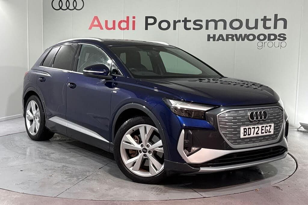 COMFORT & SOUND PACK ( AUDI PARKING SYSTEM PLUS, ADAPTIVE CRUISE WITH LIMITER, SONOS PREMIUM SOUND SYSTEM, ASSISTANCE PACK PLUS ) PARK ASSIST PLUS, AMBIENT LIGHTING PACK PLUS, SPORT SUSPENSION, SATELLITE NAVIGATION, REAR PARKING CAMERA, MULTI FUNCTION STEERING WHEEL, HILL HOLD ASSIST, CRUISE CONTROL, AUDI VIRTUAL COCKPIT, LANE DEPARTURE WARNING, APPLE CARPLAY, ANDROID AUTO, DAB RADIO, TINTED WINDOWS - PRIVACY GLASS, FRONT AND REAR PARKING SENSORS, SPLIT FOLDING REAR SEATS, LIGHT & RAIN SENSOR, AUTO DIMMING REAR VIEW MIRROR, SELECTABLE DRIVING MODES, PUSH BUTTON START, NAVARRA BLUE METALLIC WITH LEATHER UPHOLSTERY, 20'' Y SPOKE ALLOY WHEELS, DUAL ZONE CLIMATE CONTROL, HEATED FRONT SEATS WITH LUMBAR SUPPORT, LED HEADLIGHTS WITH DYNAMIC REAR INDICATORS, VOICE ACTIVATED CONTROLS AND MUCH MORE.All Audi Approved used cars are offered with a 12-month warranty and roadside assistance.Portsmouth Audi are delighted to offer this Audi Q4 in Navarra blue over Cloth/ Leather and has completed just 21837 miles., We are proud to be part of the Harwoods group, a family run business established in 1931. With four Approved Audi retailers within our group, we have access to over 400 vehicles. If this isn't the right car for you, please contact us and we will find it. Our group stock has spec to include Sunroof, Leather, Heated Seats, Apple Car Play, Heated Steering Wheel, Reverse Camera, Rear Entertainment, Towbar, 360-degree camera, Comfort & Sound Pack, Tech Pack, Panoramic Sun Roof, Tow Bar, Black Pack, Air Suspension, Apple Carplay, Adaptive Cruise, Massage Seats, Refrigerator, AWD, Technology Pack, Head up Display, Vorsprung, Technik, Black Edition, S-Line, S Line, Edition 1, TFSI, Quattro, Sportback, LWB. Other colour options including Black, Blue, Green, Silver, White, Red, Grey, Yellow, Orange. Interior options of Ebony, Black, Ivory, White, Tan, Cream, Oyster, & Euro 6 ULEZ compliant drive trains.-COMFORT & SOUND PACKAGE-Video Presentation available on Request