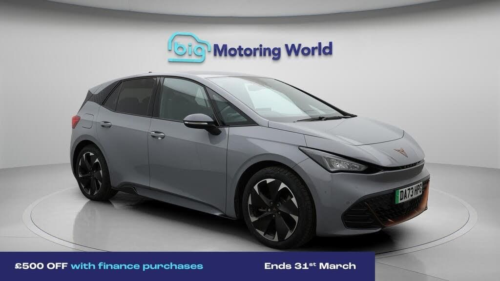 £500 towards your finance depo-Our CUPRA Born is finished in Grey. Specification includes a range of fantastic features including £500 towards your finance deposit, Head up Display, 19'' Alloy wheels, Apple CarPlay, Lane Assist, Android Auto, Satellite Navigation, Privacy Glass, Heated Seats, Rear View Camera Specification information is supplied by CAPHPI and may vary to the actual car. This data does not form any part of a buying contact. Please check specification prior to purchase in-store. The MOT is valid until September 2026, visit bigmotoringworld.co.uk for more photos, a 360 tour, service history and a free HPI report.Were BIG on peace of mind and this Grey CUPRA Born has completed our comprehensive 200 point inspection and passed all checks. Its ready for you to drive away with immediate collection in-store. We include a 90-day warranty as standard plus an option to extend for up to 3 years.Reserve this car exclusively for you, safely and securely at bigmotoringworld.co.uk, with a fully refundable £99 deposit. Test drive before you buy, with no commitment, no hassle and a completely haggle free experience. Still searching and want to see thousands more cars? We are BIG on choice with over 8000 cars to choose from.Visit our award winning web site bigmotoringworld.co.uk.Were Big Motoring World and were BIG on what matters to you.
