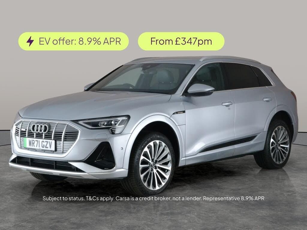Discover the Audi e-tron S line SUV, finished in sleek silver with striking LED headlights and large alloy wheels. Enjoy a premium driving experience with heated leather sport seats, electric drivers seat adjustment, and adjustable suspension for comfort on any road. Stay connected with Apple CarPlay, WiFi, and the advanced MMI Navigation Plus. Parking is effortless thanks to Park Assist and a reversing camera. Regenerative braking paddles add an engaging touch to every journey. Experience the future of motoring today. 2 services recorded, last serviced on 27/12/2025 at 20,729 miles. MOT to 03/12/2026. Visit our website for service history, online valuation, full vehicle specification plus multiple images. Certain features listed may be available via subscription packages at extra costs, please consult with Audi for details. This vehicle is VAT qualifying. Any feature/option specified here is from 3rd party data. We cannot guarantee the accuracy of any specification supplied by a 3rd party. We recommend that you physically check the specification of the vehicle on site prior to purchase. This information does not form part of the buying contract. Terms & Conditions apply. We have over 2,000 cars available from our 10 national branches, check our website to see all our stock. Our Trustpilot rating is 4.4/5 with over 9,000 reviews.