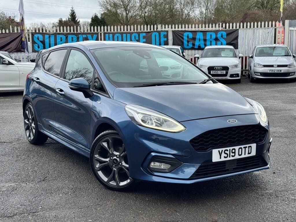Finished In Chrome Blue With Black Cloth Upholstery & 17'' Alloy Wheels This Excellent 2019 Reg New Shape FORD FIESTA 1.0T EcoBoost GPF ST-Line Hatchback 5dr Petrol Manual Euro 6 (s/s) (100 ps) Has Covered Just 70k Miles From New Backed By A Full Service History, Reversing Camera And Sensors ,Apple/Android CarPlay THIS CAR COMES WITH 3 Months WARRANTY with option to extend , Just Been Serviced And Comes With 12 Months Mot, 2 Remote Keys , Runs & Drives Absolutely Superb, A Real Must See Vehicle In Great All Round Condition. Viewings Highly Recommended. Your Part Exchange Is Welcome. LOCATED AT OUR SITE AT 15A CHERTSEY BRIDGE ROAD, CHERTSEY, KT16 8LF. For Further Details Or To Arrange A Viewing; Please Feel Free To Call Us At Any Time On 07737 581 555 With Kind Regards. www.surreyhouseofcars.co.uk