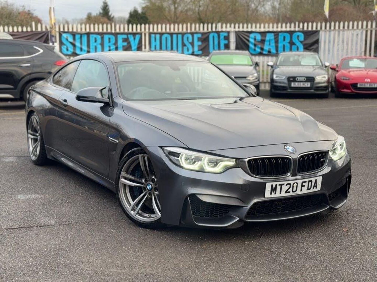 Finished In Mineral Grey With Black Leather Upholstery & 20'' Black M4 Alloy Wheels This Excellent 2020 BMW M4 3.0 BiTurbo GPF Coupe 2dr Petrol DCT Euro 6 (s/s) (431 ps) Has Covered Just 69k Miles From New Backed By A Full Service History, Just been serviced Recently And Comes With 12 Months Mot , 1 Former Keeper From New, 2 Remote Keys, Heads Up Display, Heated Seats, Apple Android CarPlay, Reversing Camera, Front And Rear Sensors, This Vehicle Comes With 3 Month Warranty As Standard With Options To Extend Your Warranty For Extra Peace Of Mind, Runs & Drives Absolutely Superb, A Real Must See Vehicle In Great All Round Condition. Viewings Highly Recommended. Your Part Exchange Is Welcome. LOCATED AT OUR SITE AT 15A CHERTSEY BRIDGE ROAD, CHERTSEY, KT16 8LF. For Further Details Or To Arrange A Viewing; Please Feel Free To Call Us At Any Time On 07737 581 555 With Kind Regards. www.surreyhouseofcars.co.uk.