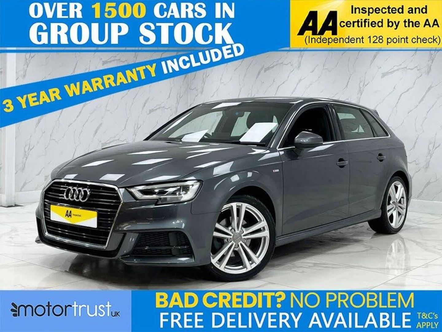 This 2019 Audi A3 TFSI S line boasts exceptionally low mileage for its age, having covered just 32,000 miles. This Euro 6 compliant model features a 1.5 litre petrol engine and comes with a full service history and a clear vehicle history check, ensuring peace of mind. The S line trim enhances its appeal, and it benefits from the Comfort and Sound Package, which includes a luxury branded sound system, heated seats, and parking assistance with front and rear sensors. Further enhancing the driving experience are LED headlights with dynamic rear indicators and a dual zone electronic climate control system, all managed through a convenient Bluetooth interface. The Audi A3 TFSI S line offers a compelling blend of performance and comfort, with an impressive 0-60mph acceleration time of just 8.2 seconds, demonstrating its responsiveness. This particular example is further distinguished by its comprehensive features, including rear parking sensors and heated seats, which provide a superior level of convenience and refinement compared to many other vehicles in its class. A 12 month MOT will be provided on purchase, underlining its readiness for the road. Part Exchange Welcome. All Majors Cards Accepted. We Have Finance Available. A Wide Range of Warranties. We Also Offer Low Cost, Nationwide Delivery Available From £1.50 a Mile. **Every endeavour is made to ensure specifications and descriptions are correct. Due to model changes specification may vary. Phone for details. MPG figures shown are government official figures.**
