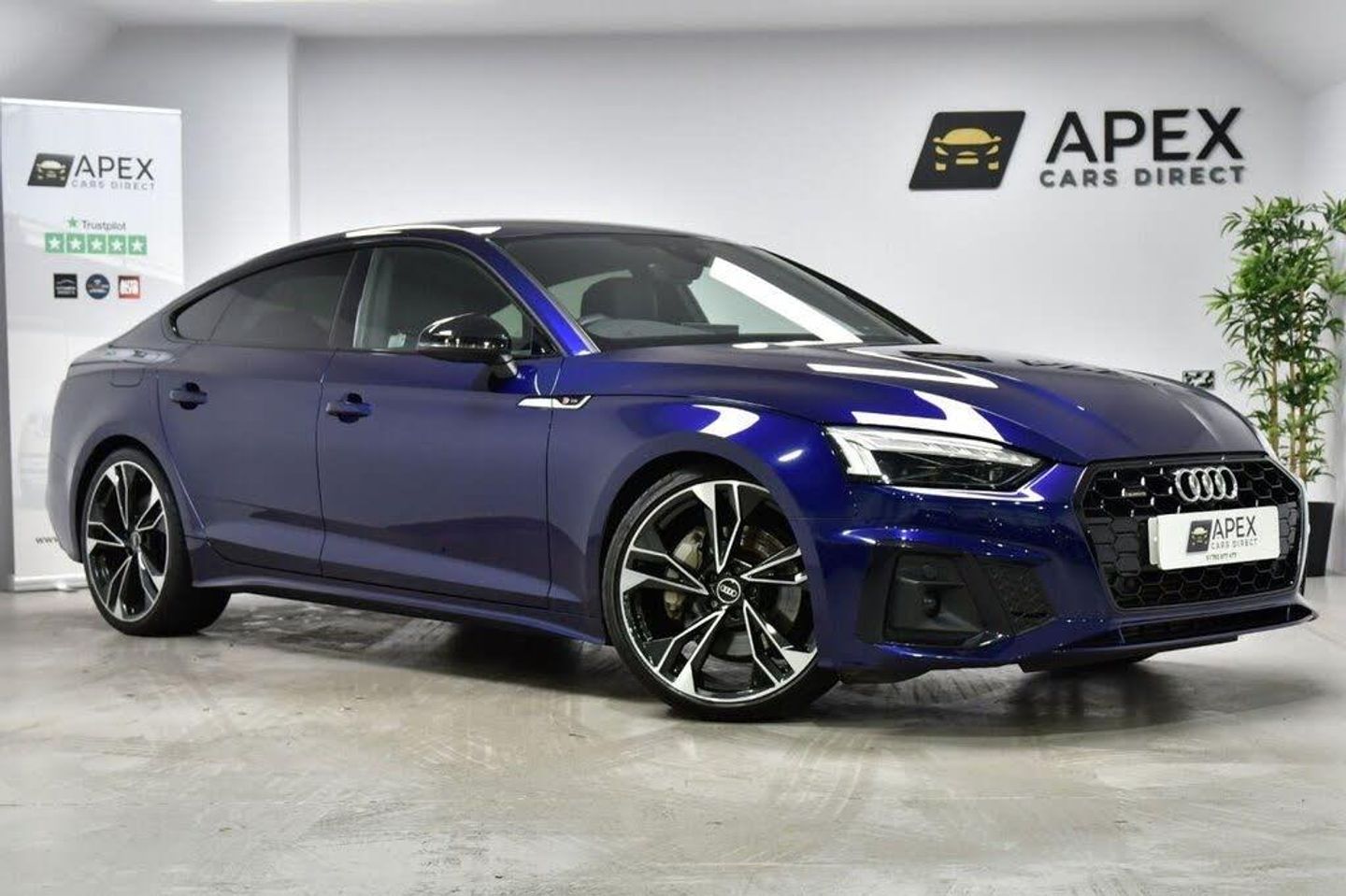 Apex Cars Direct are proud to present this stunning Audi A5 2.0 TFSI 45 Edition 1 Sportback S Tronic quattro. Collected from its second owner, this Audi boasts a full Audi Dealership Service History. We will also provide fresh service, a 12-month MOT and a 6-month nationwide warranty ready for its new owner. It has also successfully passed our comprehensive 163-point inspection, ensuring it meets our high standards. This Audi comes equipped with the Comfort and Sound Pack and sits on impressive 20-inch 5-twin-spoke polygon design alloy wheels finished in gloss anthracite black with a gloss turned finish. The S line exterior styling includes front and rear bumpers, side skirts, a honeycomb grille, rear diffuser in matt titanium black with aluminium silver detailing, black mirror housings and privacy glass, giving the car a sporty and premium appearance. The interior offers a high level of comfort with electrically adjustable front seats featuring 4-way electric lumbar support and heating, complemented by deluxe 3-zone electronic climate control. The cabin is finished with black cloth headlining, piano black inlays, contrast stitching on the seats, steering wheel and gear lever gaiter, stainless steel pedals and illuminated S line door sill trims. Technology highlights include Audi Virtual Cockpit, MMI Navigation Plus with MMI Touch, Audi Smartphone Interface and Audi Drive Select. The Audi Phone Box provides wireless charging, while Audi Connect Infotainment Services and Audi Connect Safety and Service enable connected features such as email, calendar and text message display. Entertainment and connectivity are further enhanced by DAB digital radio, eight passive loudspeakers, voice control and multiple USB ports, including two additional rear ports. Additional convenience features include Matrix LED headlights with Audi Laser Light and dynamic indicators, keyless go, power-operated tailgate, cruise control with speed limiter, light and rain sensors, auto-dimming rear-view mirror, electric front windows and electromechanical power steering. Parking is made easier with front and rear sensors and a rear-view camera. Practical touches include a split-folding 40:20:40 rear seat, front centre armrest, anti-theft alarm, locking wheel bolts, first aid kit, tool kit and tyre repair kit, making this Audi both stylish and highly usable. ** PERSONALISED WALK AROUND VIDEO AVAILABLE SENT DIRECT TO YOUR MOBILE DEVICE VIA TEXT OR EMAIL.** At Apex Cars Direct, you'll enjoy: Expertly handpicked used cars - all HPI clear and carefully inspected for quality and value 6-Month Nationwide Warranty - with the option to upgrade to a 12-Month cover from £599 A fresh 12-Month MOT - carried out by our qualified in-house technicians Part exchange welcome and a range of competitive finance options 163-Point Vehicle Health Inspection on every car for total peace of mind Personal, friendly service - message us directly on WhatsApp at 07534 088210 for expert advice We also offer: Ghost II Immobiliser - industry-leading anti-theft protection, available for a one-off payment of £599 Autoglym LifeShine Vehicle Protection - keep your car looking its best for life, with a lifetime guarantee for £599