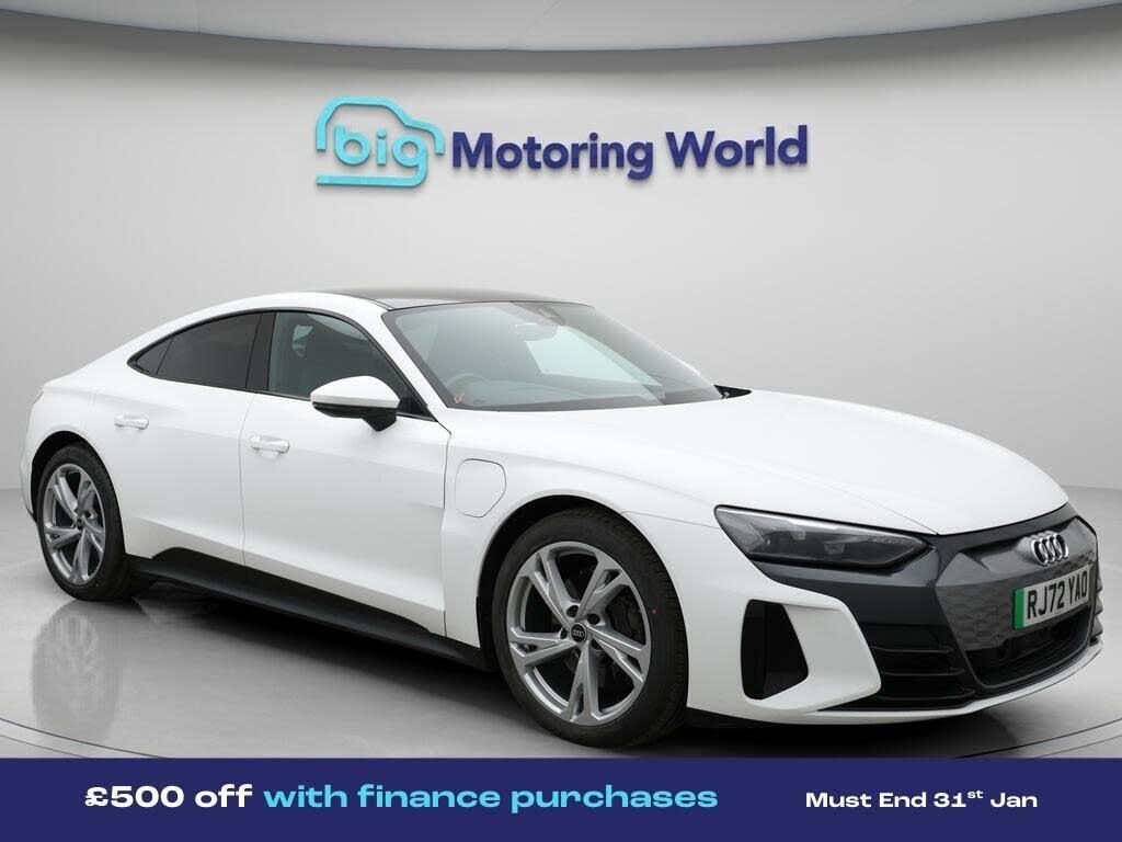 £500 towards your finance depo-Our Audi e-tron GT is finished in White. Specification includes a range of fantastic features including £500 towards your finance deposit, Panoramic Roof, All Wheel Drive, Leather Seats, Apple CarPlay, Android Auto, Satellite Navigation, Privacy Glass, Heated Seats, Wireless Phone Charging Specification information is supplied by CAPHPI and may vary to the actual car. This data does not form any part of a buying contact. Please check specification prior to purchase in-store. The MOT is valid until January 2027, visit bigmotoringworld.co.uk for more photos, a 360 tour, service history and a free HPI report.Were BIG on peace of mind and this White Audi e-tron GT has completed our comprehensive 200 point inspection and passed all checks. Its ready for you to drive away with immediate collection in-store. We include a 90-day warranty as standard plus an option to extend for up to 3 years.Reserve this car exclusively for you, safely and securely at bigmotoringworld.co.uk, with a fully refundable £99 deposit. Test drive before you buy, with no commitment, no hassle and a completely haggle free experience. Still searching and want to see thousands more cars? We are BIG on choice with over 8000 cars to choose from.Visit our award winning web site bigmotoringworld.co.uk.Were Big Motoring World and were BIG on what matters to you.