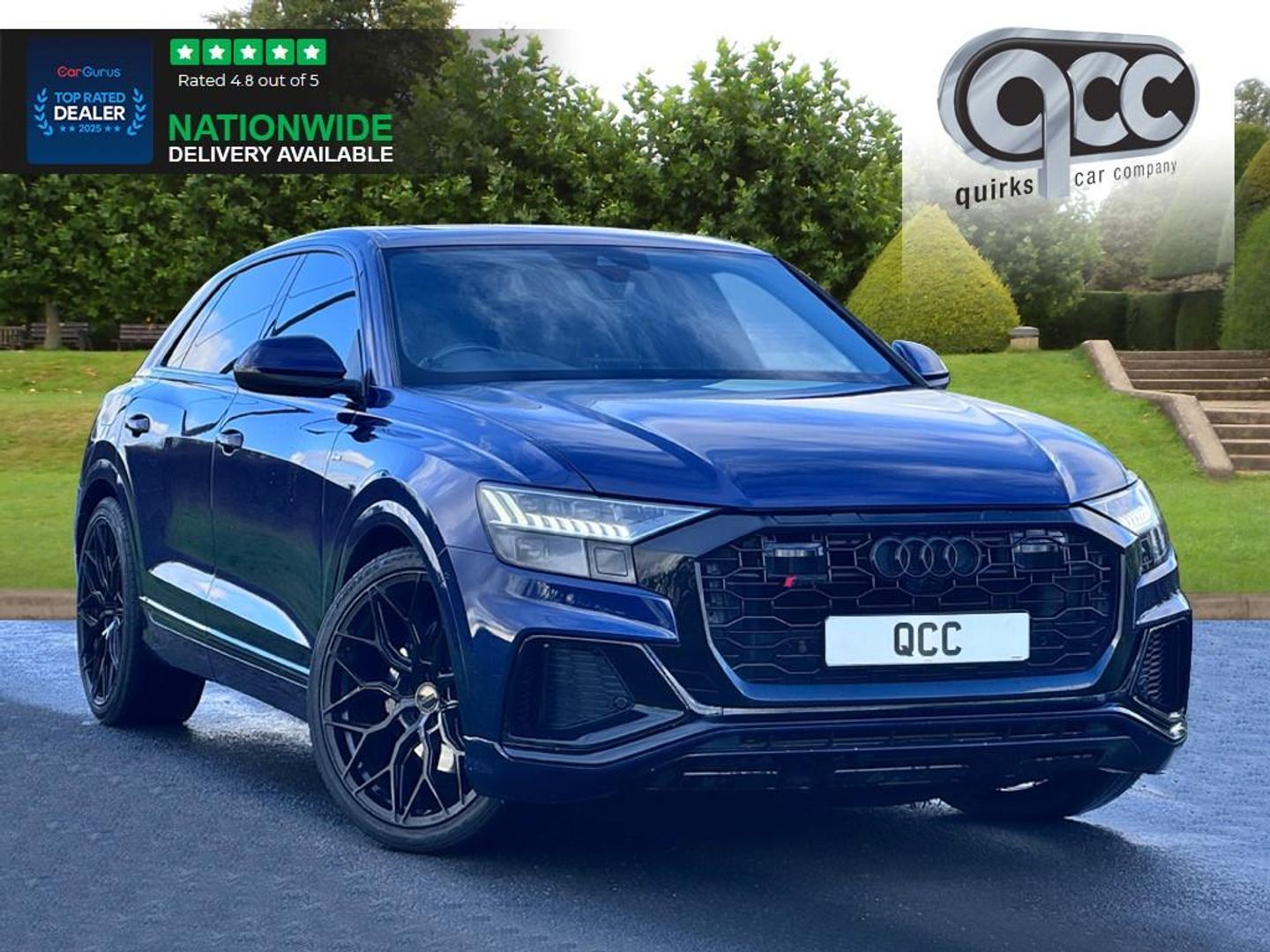 NATIONWIDE DELIVERY AVAILABLE! THIS AUDI Q8 3.0 TDI V6 50 S LINE QUATTRO FINISHED IN NAVARRA BLUE WITH HALF BLACK LEATHER AND HALF BLACK ALCANTARA BENEFITS FROM THE FOLLOWING SPECIFICATION, REAR ENTERTAINMENT WITH 2x REAR SCREENS, ELECTRIC PANORAMIC GLASS SUNROOF WITH ELECTRIC BLIND, 22" RIVIERA ALLOYS IN GLOSS BLACK, EXTENDED BODY STYLING KIT INCLUDING FRONT LOWER SPLITTER AND REAR DIFFUSER, BLACK EXTERIOR PACK, AUDI DRIVE SELECT, S LINE SPORTS PACK, AUDI VIRTUAL COCKPIT, AUDI DRIVE SELECT, TOUCH SCREEN WITH SAT NAV, REAR VIEW REVERSE CAMERA, SPORTS M/F/S/WHEEL WITH CRUISE CONTROL PADDLE SHIFT AND VOICE CONTROL, ELECTRIC HEATED MEMORY SPORTS SEATS WITH LUMBAR SUPPORT, DUAL ZONE AIR CON CLIMATE CONTROL, DUAL ZONE AIR CON CLIMATE CONTROL, ELECTRIC FOLDING EXTERIOR MIRRORS, BLUETOOTH PHONE PREP, AUTOMATICALLY DIMMING REAR VIEW MIRROR, AUTOMATIC HEAD LIGHTS, AMBIENT LIGHTING, BLUETOOTH PHONE PREP, POWER TAIL GATE/BOOT LID, PRIVACY GLASS, CENTRE ARM REST, PAN ROOF, QUIRKS CAR COMPANY ARE VERY PROUD WINNERS OF RUNNER UP FOR AUTOTRADER RETAILER OF THE YEAR 2021, WINNERS OF AUTOTRADER HIGHLY RATED FOR OUR CUSTOMER SERVICE 2021/20, AND WINNERS OF CAR GURUS TOP RATED DEALER 2021/20/19. WE USE THIRD PARTY SOURCES TO OBTAIN STANDARD AND OPTIONAL FITTED FEATURES AND SPECIFICATIONS. WE CANNOT BE HELD LIABLE FOR ITS ACCURACY SO PLEASE VERIFY THESE DETAILS WHEN VIEWING THE VEHICLE PRIOR TO PURCHASE. YOU MUST PHYSICALLY CHECK THE SPECIFICATION OF THE VEHICLE ON SITE PRIOR TO PURCHASE.