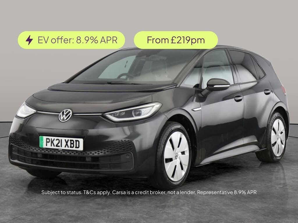 Discover the Volkswagen ID.3 a sleek grey electric hatchback that brings technology and comfort together. Enjoy peace of mind on every drive with Adaptive Cruise Control, Blind Spot Assist, and the comprehensive Assistance Pack. Effortless parking comes courtesy of front and rear sensors, while Bluetooth keeps you connected. Charging leads are included, making it the perfect choice for your modern, eco-friendly lifestyle. Drive into the future with the ID.3. 3 services recorded, last serviced on 11/06/2025 at 48,226 miles. MOT to 29/04/2026. Visit our website for service history, online valuation, full vehicle specification plus multiple images. This vehicle is VAT qualifying. Any feature/option specified here is from 3rd party data. We cannot guarantee the accuracy of any specification supplied by a 3rd party. We recommend that you physically check the specification of the vehicle on site prior to purchase. This information does not form part of the buying contract. Terms & Conditions apply. We have over 2,000 cars available from our 10 national branches, check our website to see all our stock. Our Trustpilot rating is 4.4/5 with over 9,000 reviews.