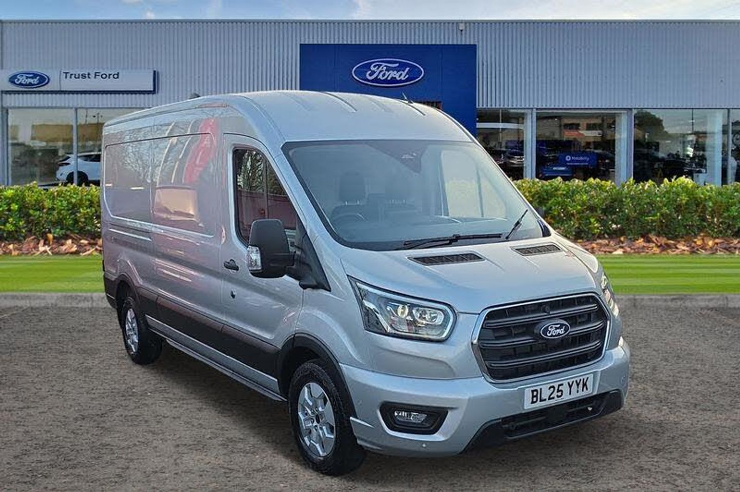 QUICKCLEAR HEATED WINDSCREEN uses ultra thin filaments that superheat to de-ice and de-mist your windscreen as well as help de-freeze the wipers and works in seconds, FRONT AND REAR PARKING SENSORS are designed to help you park more confidently helping you judge the distance between your vehicle and obstacles both in front and behind you, CRUISE CONTROL provides extra comfort on longer journeys allowing you take your foot off the acceleration whilst just focusing on steering the vehicle, BLUETOOTH HANDS FREE WITH VOICE CONTROL allows you to operate both your mobile phone and Ford audio system - controlling several functions using a set list of simple voice commands, 360 DEGREE CAMERA Keep an eye on safety via the 360 degree camera displaying the world around you , SYNC 4 includes Android Auto - Apple Car Play with advance speech recognition and over the air update capability, 12 Touchscreen with SYNC4 navigation, PAS, Automatic air conditioner with 12 inch multi function display, Single rear wheels, Quickclear heated windscreen, Electric windshield defroster, Rear mudflaps, 16 5 spoke alloy wheels x 6.5, Leather steering wheel, Warning lights, Reach and rake adjustable steering column, High mounted stop lamp, Front passenger airbag deactivation, Audio controls mounted on steering wheel, 2 x 12V power outlets, Driver one touch up/down power windows, Configurable Unlocking, Cold start (-20), Header mounted courtesy lights - 2 map lights, Water in fuel filter with sensor, Gearshift indicator light, Easy fuel capless refuelling system, Auto start/stop system, Overhead console, High intensity discharge headlamp with static cornering lights, Storage box under dual passenger seat, Driver sunglasses roof storage, Driver large head/short arm mirror, Electronic dynamic cornering control, Tyre pressure sensors, Paddle shift, Side wind mitigation, Speed dependent power lock group, DAB Radio, Intelligent Speed Assist, Emergency assistance, Electric parking brake, Rear fog lights, Visible Vehicle Identification Number (VIN), Vehicle maintenance monitor, Selectable drive mode, Bi-Xenon headlights with LED daytime running lights, Lockable glove box lid, ABS + ESP + Hill start assist, Curvature Control, Emergency brake warning, Radio with remote stalks, Rear axle Alt A - Narrow track, Integrated indicators on door mirrors, Automatic windshield wiper, Leather gear shift knob, Driver and passenger seatbelt reminder, Non limited slip differential front axle, Digital rear view mirror, Partial rubber inside floor cover, Partial molded headliner, Two step door unlock system, Locking wheel lug nut, Rear splash guards, Door entry remote control unit 2 Fobs key, Static bending headlights, Load compartment tie down loops, Auto high headlamp, Rain sensing windscreen wipers, Self coloured door handles, Plastic rear bumper, Wrong way alert, Delete wheel covers, Driver front seatbelt buckle pretensioner, 4 radio speakers, Shielded power door deadlocks, Roof mounted radio antenna, 8 Part digital instrument cluster, Wireless beltminders, Rotary gear shifter, Model badge, 2 litre twin facia mounted bottle holder, Body coloured upper front bumper, Body coloured lower front bumper, Self coloured rear bumper with integral step, Self coloured front grille with chrome surround, Wide bodyside self coloured mouldings, Self coloured cargo door handle, 4 spoke premium feel Sensico wrapped steering wheel, Front independent MacPherson struts, linear rate coil springs, stabiliser bar, gas pressurised shock absorbers and rear leaf springs, P235/65 R16C BSW tyre size, Driver assistance pack 6 - Transit Auto, LONG WHEEL BASE, MEDIUM ROOF , ULEZ COMPLIANT, ULEZ, NATIONWIDE DELIVERY AVAILABLE, CAMERA, AIRCON