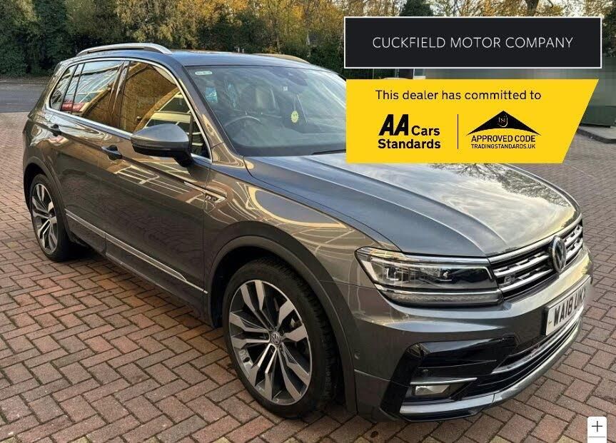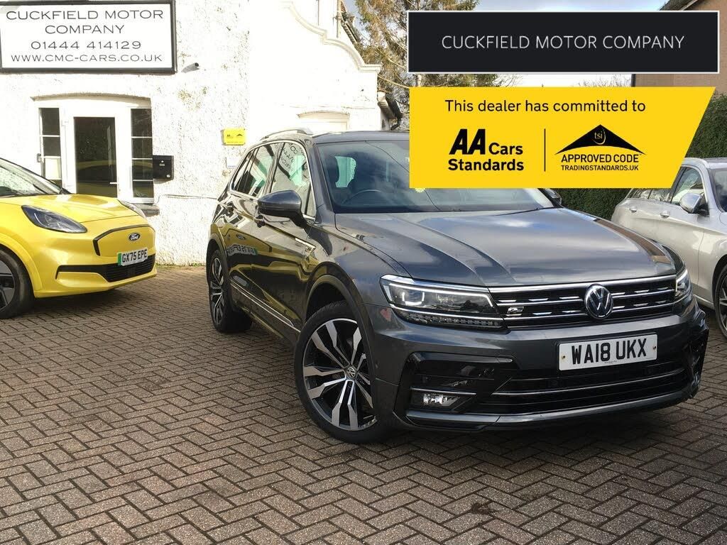 Cuckfield Motor company are pleased to offer for sale this stunning VW Tiguan R-Line 2.0 tsi 4 MOTION automatic. This car comes with a full service history with recorded visits at 7144, 14366, 18357, 24984, 31311, 40440, 48905, 50239 and 54763 miles and also includes HALDEX and Gearbox oil changes in 03/2025. The car looks amazing in grey and has a huge level of spec including CARPLAY---Satellite navigation---Reversing camera---Front and rear parking sensors---Leather and cloth seats---Heated seats---Panoramic roof---Power tailgate---Electric folding mirrors---Keyless entry and go---3X USB---Park assist---Bluetooth telephone and audio streaming---20'' alloy wheels---Automatic lights---Paddle shift---Cruise control and more.