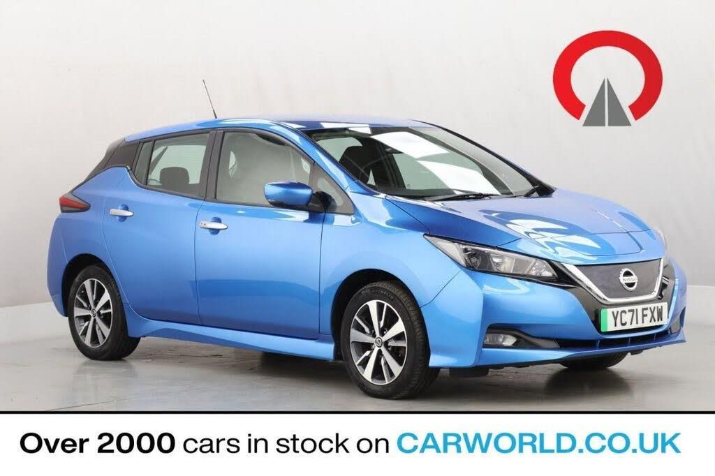 12V Socket, 16in Alloy Wheels, 50kW CHAdeMO Quick Charger, 6 Airbags, 6.6kW AC On Board Charger, 7in Combimeter, 8in Touchscreen Entertainment System, Alarm - Thatcham, Anti Lock Braking System - ABS, Audio System with 6 Speakers, Auto Hazard Lights, Automatic Air Conditioning, Blind Spot Intervention, Blind Spot Warning, Body Coloured Door Mirrors, DAB Radio with Apple CarPlay and Android Auto, Door Handles - Chrome, E-Pedal, Electric Parking Brake, Electric Power Steering, EVSE 6M or Mode 3 - 6M, Front and Rear Electric Windows, Front Fog Lights, Front Seat Back Pockets, Halogen Headlamps with LED Signature, Headlights - Follow Me Home Function, Headlights - High Beam Assist, Hill Start Assist, Illuminated Charge Port, Integrated Turn Signals in Mirrors, Intelligent Auto Headlights, Intelligent Cruise Control, Intelligent Emergency Braking with Pedestrian Recognition, Intelligent Lane Intervention, Intelligent Trace Control, ISOFIX on Rear, Lane Departure Warning, Leather Steering Wheel, LED Signature Tail Lights, Manual Folding Mirrors, Manually Adjustable Drivers Seat - Slide - Recline and Lifter, Manually Adjustable Passenger Seat - Slide and Recline, Metallic Blue Rear Bumper Accents, Nissan i-Key and Start Push Button, Rain Sensing Windscreen Wipers, Rear Cross Traffic Alert, Rear View Camera, Speed Limiter, Steering Column - Rake and Reach, Tyre Puncture Repair Kit, USB Port