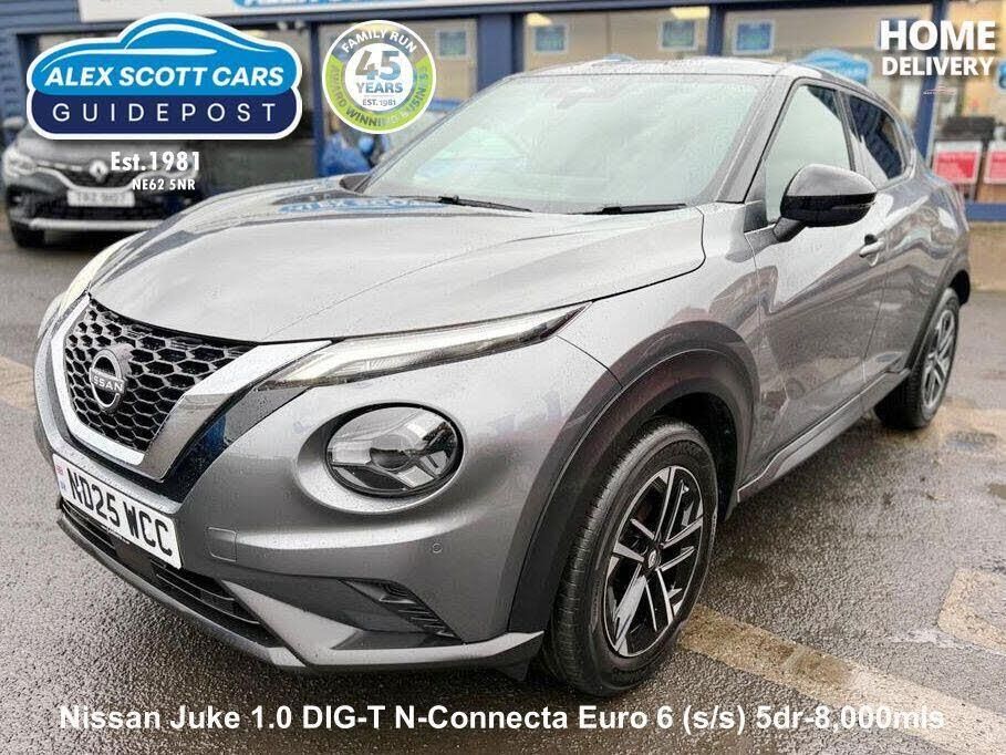 Discover this exceptional 2025 Nissan Juke DIG-T N Connecta, boasting an incredibly low mileage of just 8000 miles, making it a standout choice for its age. This one owner vehicle is presented in the N Connecta trim and is powered by an efficient 1.0 litre petrol engine, meeting Euro 6 emission standards. You'll appreciate the convenience of Apple CarPlay and Google Android Auto, seamlessly integrating your smartphone for navigation and entertainment. Stay connected on the go with Bluetooth connectivity, complemented by both USB A and C ports. Driving and parking are made easier with LED headlights for clear visibility, front parking sensors, and a helpful rear view camera.This Nissan Juke offers impressive fuel economy, achieving a highlight of 49 miles per gallon, which is excellent for its class and indicates it is more economical than many similar vehicles. Furthermore, its low CO2 emissions are another key highlight, suggesting a more environmentally conscious driving experience compared to other cars. This combination of low mileage, single ownership, advanced technology, and strong fuel efficiency makes this Juke a truly appealing option.-Nissan Warranty til 05/2028-ALEX SCOTT CARS GUIDEPOST Award Winning Family Run Business Since 1981 TEL 01670 823777