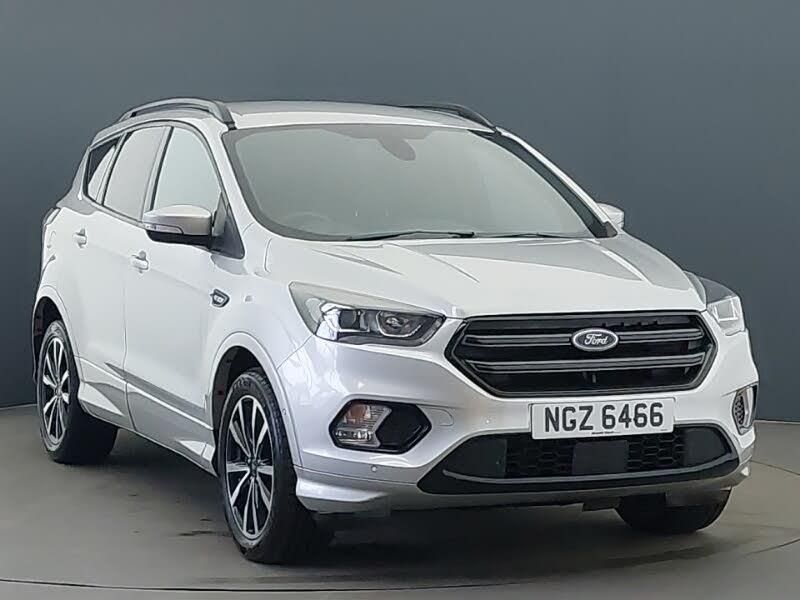 18" Alloy Wheels, Enhanced active park assist including perpendicular parking pull out assist, flank guard and front/rear parking sensor, Appearance pack - Kuga/ST-Line, Apple car play/Android Auto, Hands free telephone, Rain sensor windscreen wipers, Sports suspension, Remote audio controls on steering wheel, Auxiliary socket for external device, USB connection, Body styling kit - Body colour front/rear/side skirts, door claddings, wheel arches, high gloss black rear mesh, silver skid plate and rear diffuser, Auto dimming rear view mirror, Electrically operated and heated door mirrors with side indicators, Electrically operated front and rear windows with global closing, Quickclear heated windscreen, Power folding door mirrors, Twin exhaust pipes, Centre console with stowage tray/bottle holder/CD stowage/front and rear 12V power point, Auxiliary power socket in luggage area, Isofix system on outer rear seats, Leather steering wheel with red stitching and gear knob, Multi-colour ambient interior lighting, Sports style front seats, Hill start assist, Front passenger airbag deactivation switch, MyKey system, Keyless start with 'Ford Power' starter button, Keyless entry