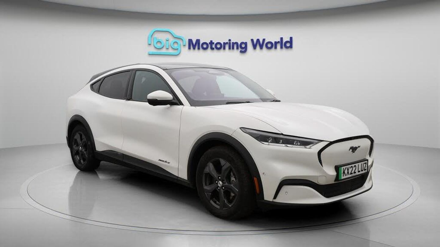 £750 towards your finance depo-Our Ford Mustang Mach-E comes with optional extras worth £4,750. Specification includes a range of fantastic features including £750 towards your finance deposit, 18'' alloy wheels, Leather Seats, Adaptive Cruise Control, Bang & Olufsen Speakers, Privacy Glass, Rear View Camera, Heated Steering Wheel, Internet, Bluetooth Specification information is supplied by CAPHPI and may vary to the actual car. This data does not form any part of a buying contact. Please check specification prior to purchase in-store. The MOT is valid until January 2027, visit bigmotoringworld.co.uk for more photos, a 360 tour, service history and a free HPI report.Were BIG on peace of mind and this White Ford Mustang Mach-E has completed our comprehensive 200 point inspection and passed all checks. Its ready for you to drive away with immediate collection in-store. We include a 90-day warranty as standard plus an option to extend for up to 3 years.Reserve this car exclusively for you, safely and securely at bigmotoringworld.co.uk, with a fully refundable £99 deposit. Test drive before you buy, with no commitment, no hassle and a completely haggle free experience. Still searching and want to see thousands more cars? We are BIG on choice with over 8000 cars to choose from.Visit our award winning web site bigmotoringworld.co.uk.Were Big Motoring World and were BIG on what matters to you.-Multi Award Winning Website & Car Supermarket of the year WINNER 2018. Call now.