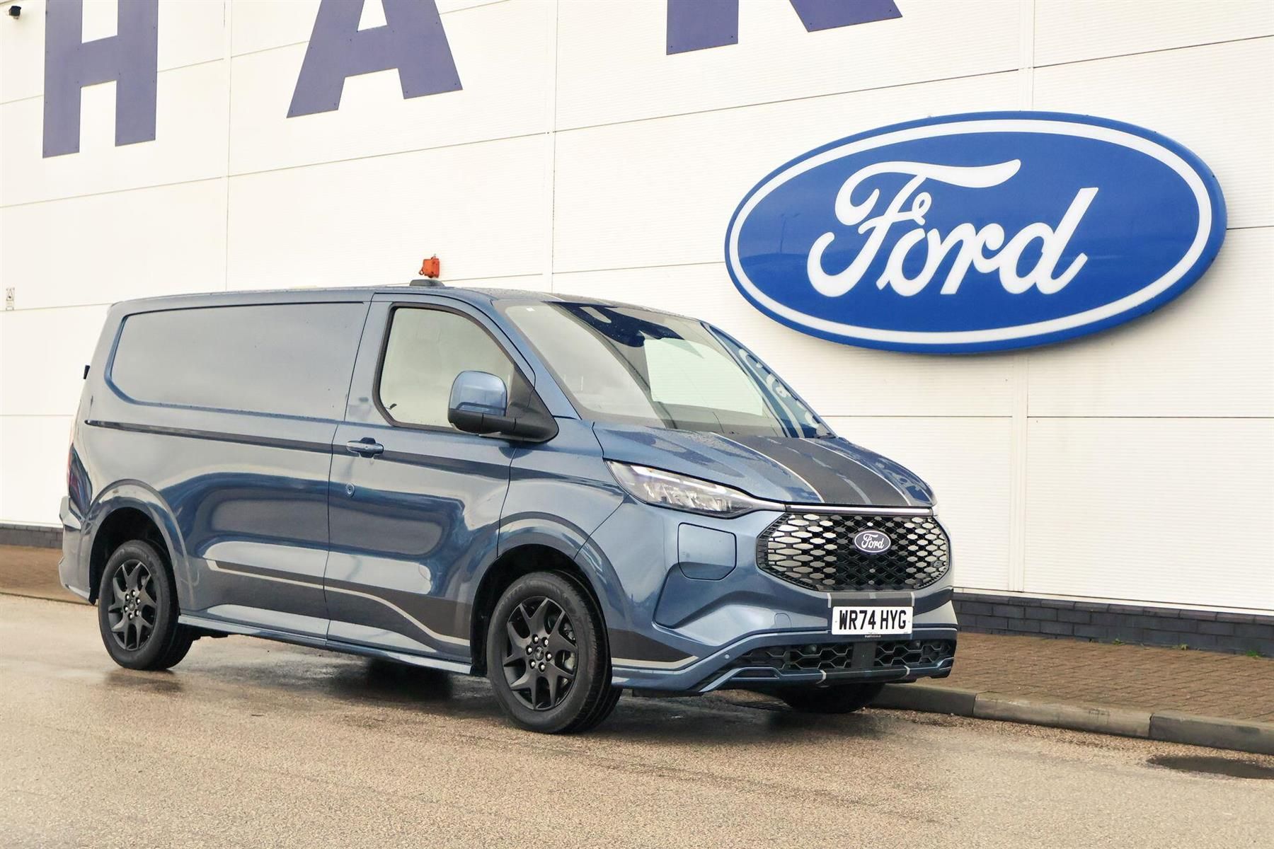 13" Touchscreen, 5G embedded modem, AECS NO SMS/Roll Detect 2G, Close Assist, PAS, Tyre pressure monitor, Wireless charging, SYNC 4 - Android Auto/Apple Car Play, advance speech recognition, over the air update capability, Automatic headlights, Automatic windscreen wipers, Body coloured door mirrors, Body coloured front bumper, Body coloured rear bumpers, Coast-to-coast light bar, Daytime running lights, Electric front windows with one touch facility for driver and front passenger, Front mud flaps, Hood Accent Stripes, LED tail lamps, Low roof line, Quickclear front window defroster, Rear cargo hinged door, Rear spoiler, Signature BEV Grille, Soft close assist, Trailer sway control, 6 Load compartment tie down loops, Courtesy light, Dual zone automatic air conditioning, Heat pump, Interior grab handle with driver's sunglasses holder, LED lights, Locking glove box lid, Sensico gearshift knob, USB/Aux power socket, 2 remote keys, Alcohol Interlock wiring preparation pack, Keyless entry and start, Locking wheel lug nut, Standard unlocking, Thatcham category 1 alarm, Cloth - Ripple Style with Digital Aqua Accents