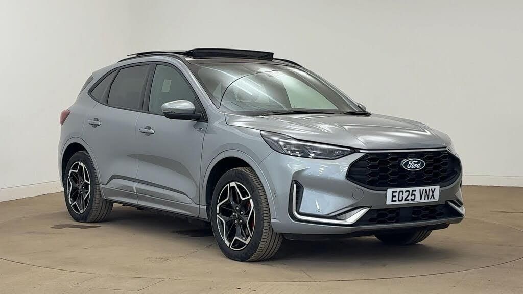 12-Way Ergonomic Power Adjust Driver's and Passenger's Seat, 12V Power Point in Floor Console, 12v Power Point in Cargo Area, 12v Socket - Voltage Regulator, 19in Alloy Wheels - ST-Line- Ebony Black - Machined Finish, 2nd Row Sliding Seats, 360 Degree Camera, ABS - Anti-lock Braking System, Acoustic Vehicle Alert System - AVAS, Adaptive Cruise Control, Air Conditioning - Electronic Automatic Temperature Control - EATC, Airbag - Driver and Front Passenger Side, Airbag - Front Passenger Deactivation Switch, Airbags - Driver and Front Passenger, Airbags - Front and Rear Side Curtain, Aluminium - Finish Front Scuff Plates with ST-Line Script, Aluminium Foot Pedals - ST-Line Design, Ambient Lighting, Auto Dimming Rear View Mirror, Auto Wipers, Automatic Door Relocking, Black Roof Rails, Centre Console with Electronic Parking Brake, Child Locks - Manual on Rear Doors, Cross Traffic Alert, Digital Colour 12.3in Instrument Cluster, Driver Assistance Pack, Driver and Passengers Sun Visor with Illumination, Dual Exhaust Tailpipes with Unique Brushed Stainless Steel Finish, EPAS - Electric Power Assisted Steering, Electric Parking Brake with Auto Hold, Electrical Charging Point in Second Row, Engine Immobiliser - SecuriLock, Enhanced Electronic Stability Control - ESC with Traction Control - Emergency Brake Assist - EBA - Hill Start Assist - HSA and Trailer Sway Control, Exterior Door Handles - Body Coloured, Ford Easy Fuel System, Ford Keyfree System - Keyless Entry with Ford Power Starter Button, Ford SYNC 4 Navigation, Front Seats - 2-Way Manual Height Adjust Passive Head Restraints, Front Seats - Drivers and Passengers Seatback Map Pockets, Front Seats - Sports Style V-shape with High Bolster, Front Windows - Laminated Glass, Front and Rear Bumper - Sporty Body Colour with Rear Ebony High-Gloss Insert, Front and Rear Floor Mats with Red Stitching, Front and Rear Parking Sensors, Full LED Headlamps, Gearshift - Automatic - Electronic Rotary Gearshift Dial, Glovebox Lights, Handsfree Power Tailgate, Headlights - Automatic Follow Me Home Lighting, Headlights - Automatic High Beam Assist, Headlights - Levelling System - Manual, Headlights - Unique Bending, Headliner - Sports Dark, Heated and Power Folding Door Mirrors - Puddle Lights - Memory Function - Camera, High-Mounted Brake Light, Kuga Badge, LED Daytime Running Lights, LED Fog Lights - Front, Lane Keeping Aid with Lane Departure Warning, Large Rear Spoiler, Load Compartment - Lights, Load Compartment - Tie Down Hooks, Load Compartment Carpet, Locking Wheel Nuts, Lower Bodyside Moulding - Body Colour, Lower Door Frame Beltline - Black, Mini Overhead Console with Sunglasses Holder Bin, MyKey, Pop-Out Door Edge Protectors, Power Door Deadlocks - Double Locking, Power Door Locks, Power Opening Panoramic Roof, Pre-Collision Assist with Autonomous Emergency Braking, Quickclear Heated Windscreen, Rear Duct on B-Pillar, Rear Lights - LED, Rear Privacy Glass, Rear Seat - 60-40 Split Folding Seats, Rear Seat Centre Head Restraint, Rear Seats - 2-Way Head Restraint Up-Down, Rear Seats - Folding Centre Armrest with Integrated Cup Holder, Rear Seats - Sliding Seat Adjust Tracks - Fore-Aft, Red Brake Calipers, Remote Tailgate Release, Removable Package Tray, Rocker Panel Mouldings - Body Colour - ST-Line Design, ST-Line Badge on Left and Right Side Wings, ST-Line Bodystyling Kit, ST-Line Front and Rear Bumper Moulding - Body Colour, Seat Belt - Drivers - Front Passenger and Rear Seat Belt Reminder Alert, Seat Belts - Front 3-Point Seatbelts with Load Limiter, Seat Belts - Front Height Adjustable, Seat Belts - Rear Retractable Rear Belt - 3-Point All Positions, Seats - ISOFIX Mounting Provision for Child Seats - Outer Seats Only, Selectable Drive Modes, Single Rear Fog Light, Standard Home Charging Cable - 3-Pin Domestic Socket 230V, Steering Column - Locking Electric, Steering Column - Rake and Reach Adjustment, Steering Wheel - ST-Line Sports-Style Perforated Sensico-Trimmed with Red Stitching