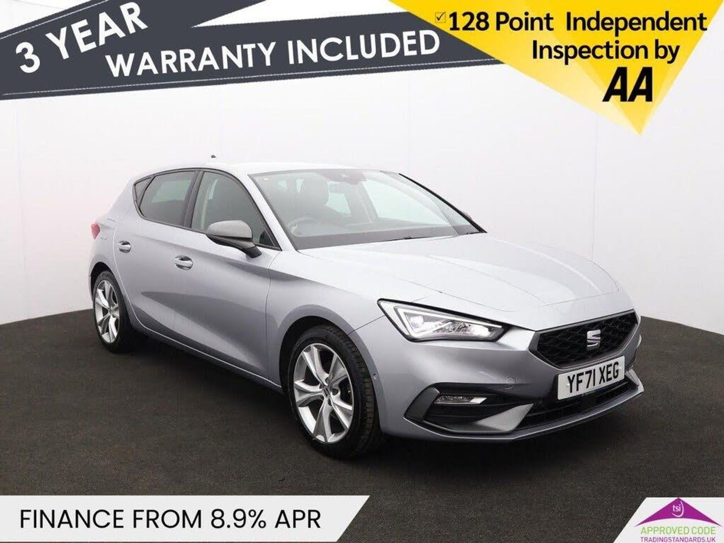 This 2022 SEAT Leon TSI EVO FR is a superb example, having had only one owner since new and boasting a long MOT. Under the bonnet, you'll find a responsive 1.5 litre petrol engine, meeting Euro 6 emissions standards. This FR trim level comes equipped with a host of desirable features, including separate daytime running lights with automatic headlight control and a coming home function, ensuring you always have clear visibility. For effortless parking, it includes Park Assist with front and rear sensors, taking the stress out of manoeuvring. Inside, the Leon offers the Media System Plus with navigation and Bluetooth connectivity, complemented by Full Link smartphone integration, offering wireless Apple CarPlay and wired Android Auto for seamless access to your favourite apps. You can also enjoy personalised comfort with the three zone climate control. This particular model accelerates from 0 to 60mph in just 9.5 seconds, demonstrating its lively performance. Furthermore, the generous boot space provides ample room for all your luggage, making this SEAT Leon a practical and enjoyable choice for any journey. Oakwood Motor Company are an established family run dealership, home of the best used cars in Bury! We have hundreds of cars currently in stock from all your favourite brands including our specialist selection of Audi VW Group vehicles. Our fantastic rates are available on both HP and PCP finance, and we have extended warranties available for up to 3 years for complete peace of mind. Our experienced sales team are on hand to help you every step of the way, so give us a call today to reserve your new car with a refundable £100 deposit. Visit our used car dealership in Bury! We take all reasonable steps to ensure the accuracy of the information supplied in our advertising materials, however on occasion errors may occur. Images used are for illustrative purposes only. Please ensure you take the time to fully inspect your vehicle for specification/features which are important to you, and raise any queries with your Sales Executive.