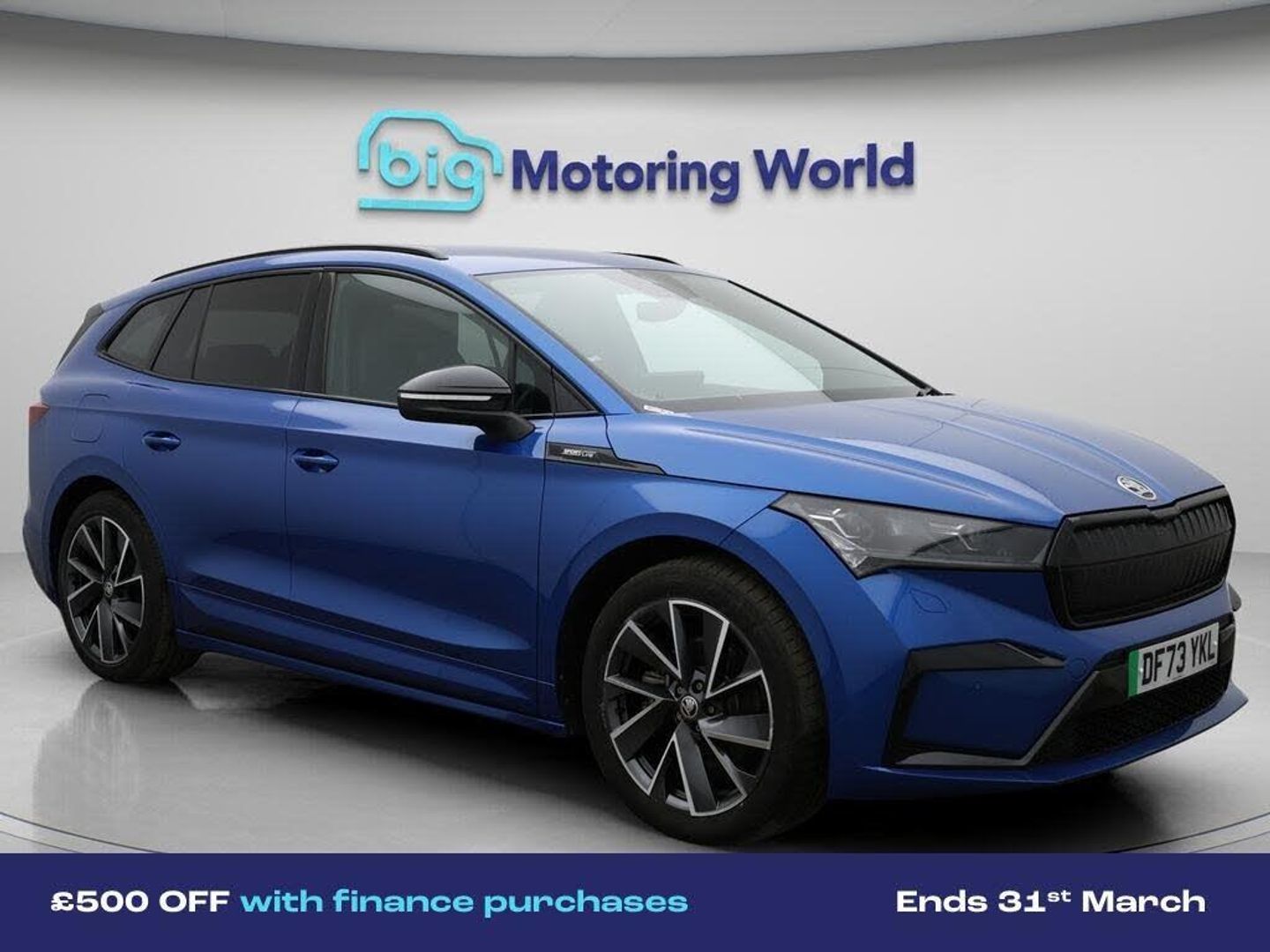 £500 towards your finance depo-Our Skoda Enyaq is finished in Blue. Specification includes a range of fantastic features including £500 towards your finance deposit, 20'' Alloy Wheels, Part Leather Seats, Apple CarPlay, Lane Assist, Cooled Glovebox, Android Auto, Satellite Navigation, Privacy Glass, Heated Seats Specification information is supplied by CAPHPI and may vary to the actual car. This data does not form any part of a buying contact. Please check specification prior to purchase in-store. The MOT is valid until December 2026, visit bigmotoringworld.co.uk for more photos, a 360 tour, service history and a free HPI report.Were BIG on peace of mind and this Blue Skoda Enyaq has completed our comprehensive 200 point inspection and passed all checks. Its ready for you to drive away with immediate collection in-store. We include a 90-day warranty as standard plus an option to extend for up to 3 years.Reserve this car exclusively for you, safely and securely at bigmotoringworld.co.uk, with a fully refundable £99 deposit. Test drive before you buy, with no commitment, no hassle and a completely haggle free experience. Still searching and want to see thousands more cars? We are BIG on choice with over 8000 cars to choose from.Visit our award winning web site bigmotoringworld.co.uk.Were Big Motoring World and were BIG on what matters to you.